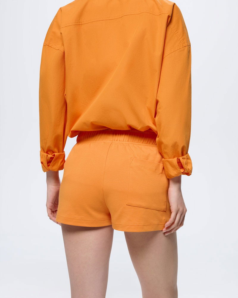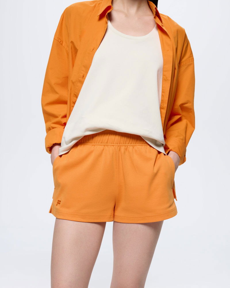 Effortless by nature. Expertly crafted from 100% OCS-certified organic cotton, the Summer Shorts in Saffron Orange offer an ultra-soft, breathable feel and a structured silhouette that holds its shape.