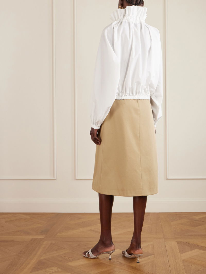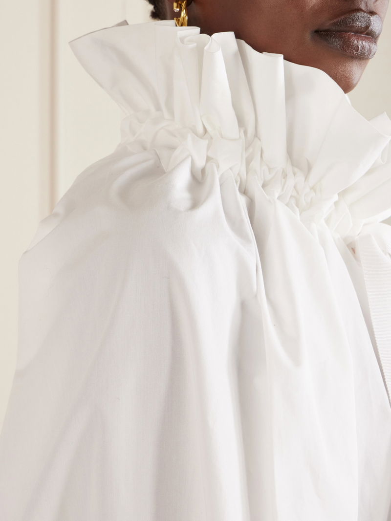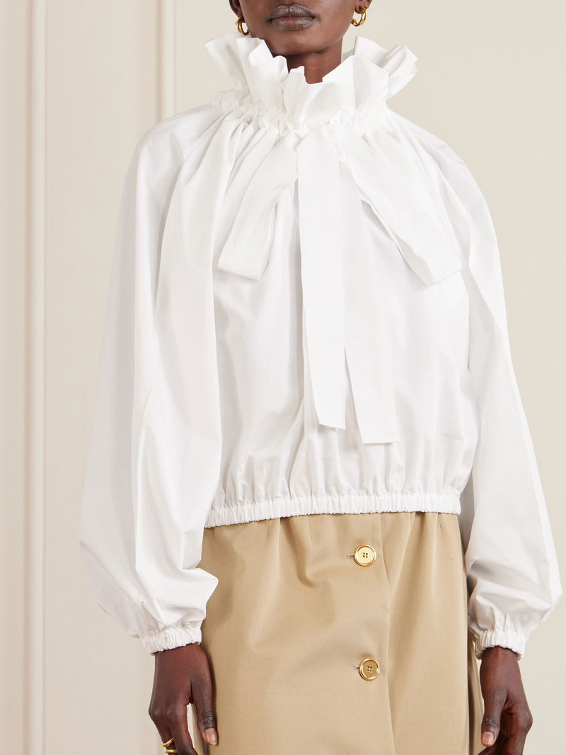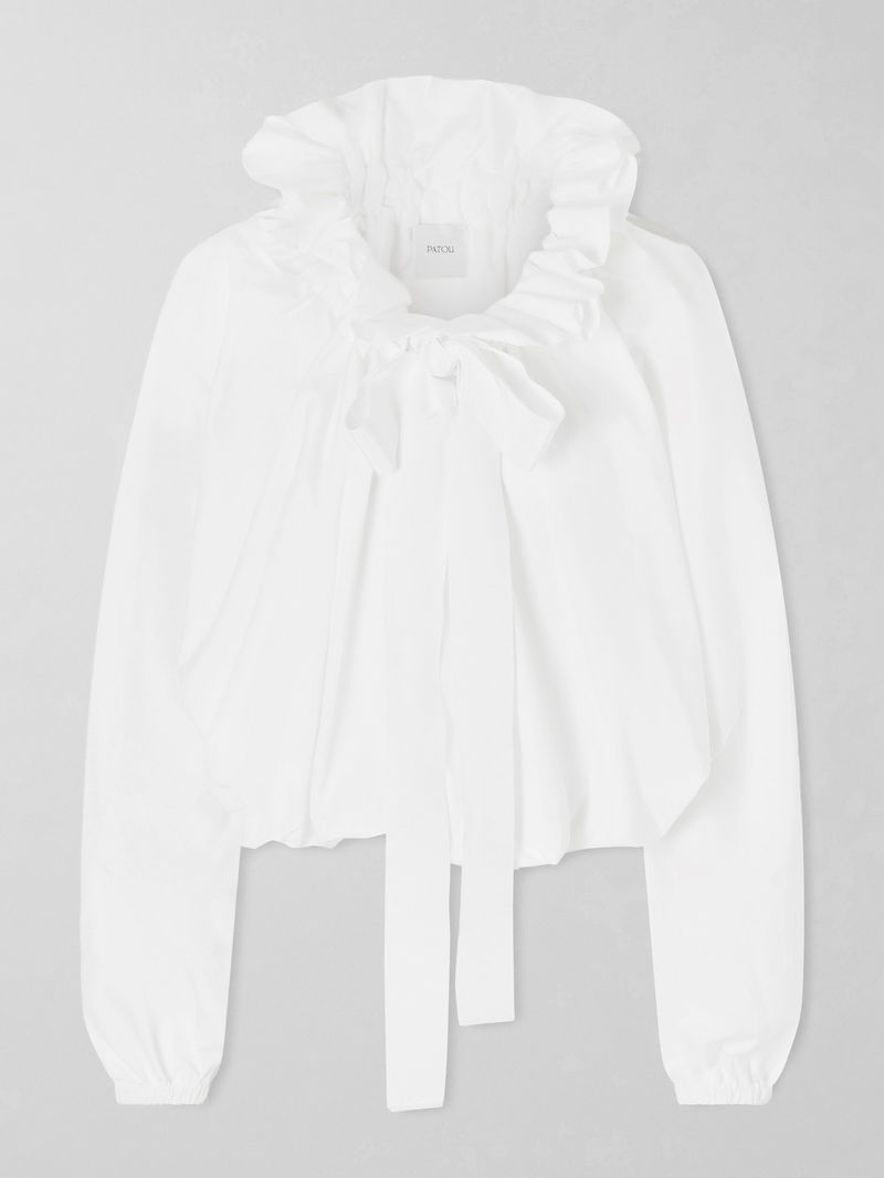 Designed to ignite the joy of dressing up, Patou's blouse proves the classics don't have to be boring. It's cut from crisp cotton-poplin and traced with romantic ruffles – a modern take on the pie-crust collar.
