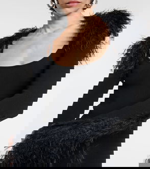 Dress, Jersey, Ruched, Flared hem, Ties at neck, Stretchy fabric, Mid-weight fabric.