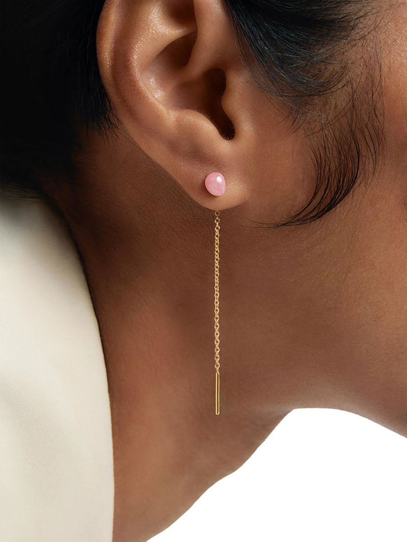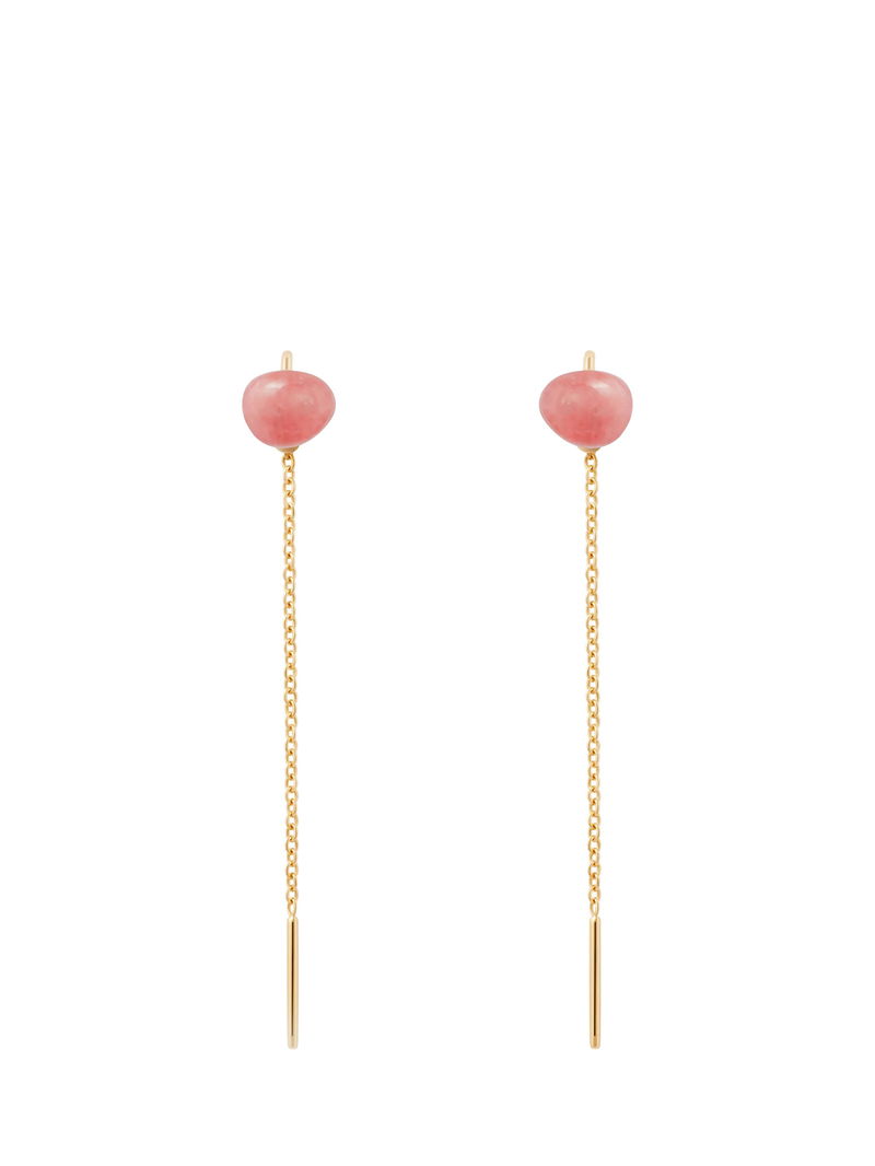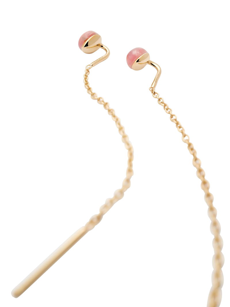 Elevate your collection with these gold-plated sterling silver drop earrings. Featuring a delicate chain design and natural rhodochrosite stones, they offer a polished finish and elegant pink hues. Suitable for pierced ears only.