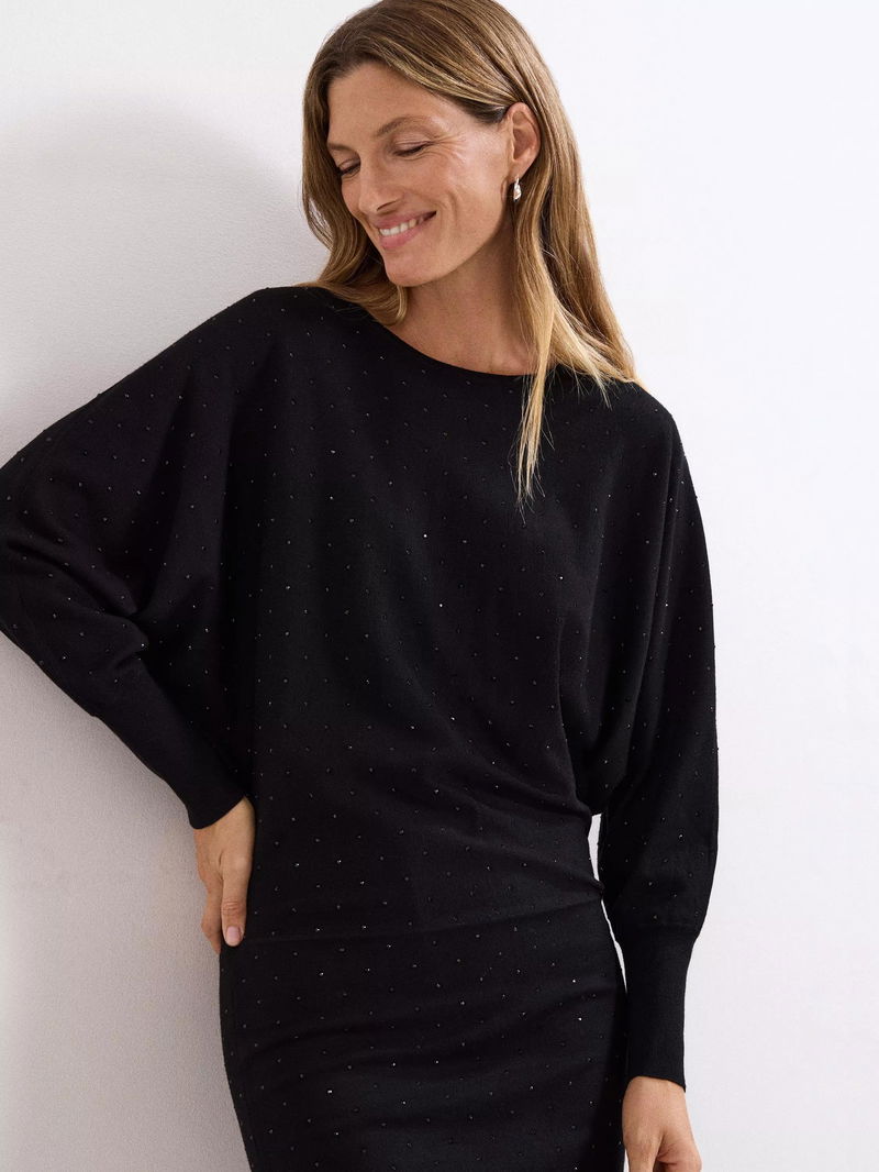 Becca Studded Jumper Dress Containing LENZING™ ECOVERO™ Viscose, Black