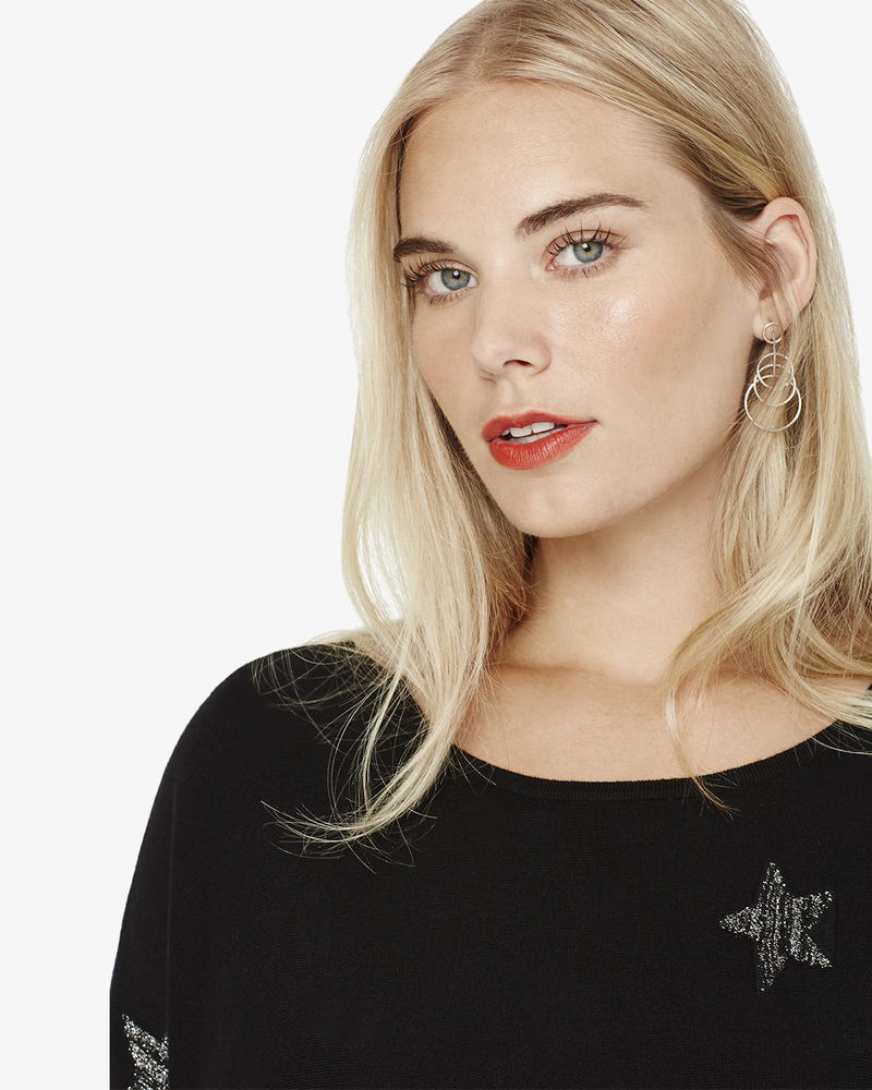 For effortlessly stylish knitwear, add this shimmer jacquard star design jumper to your wardrobe. With a relaxed fit, contrast plain back and step hem, it will be your new weekend go-to style.