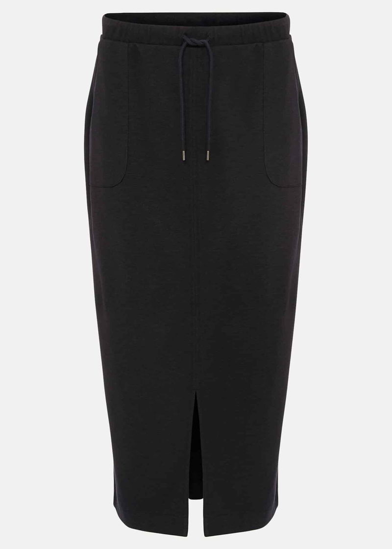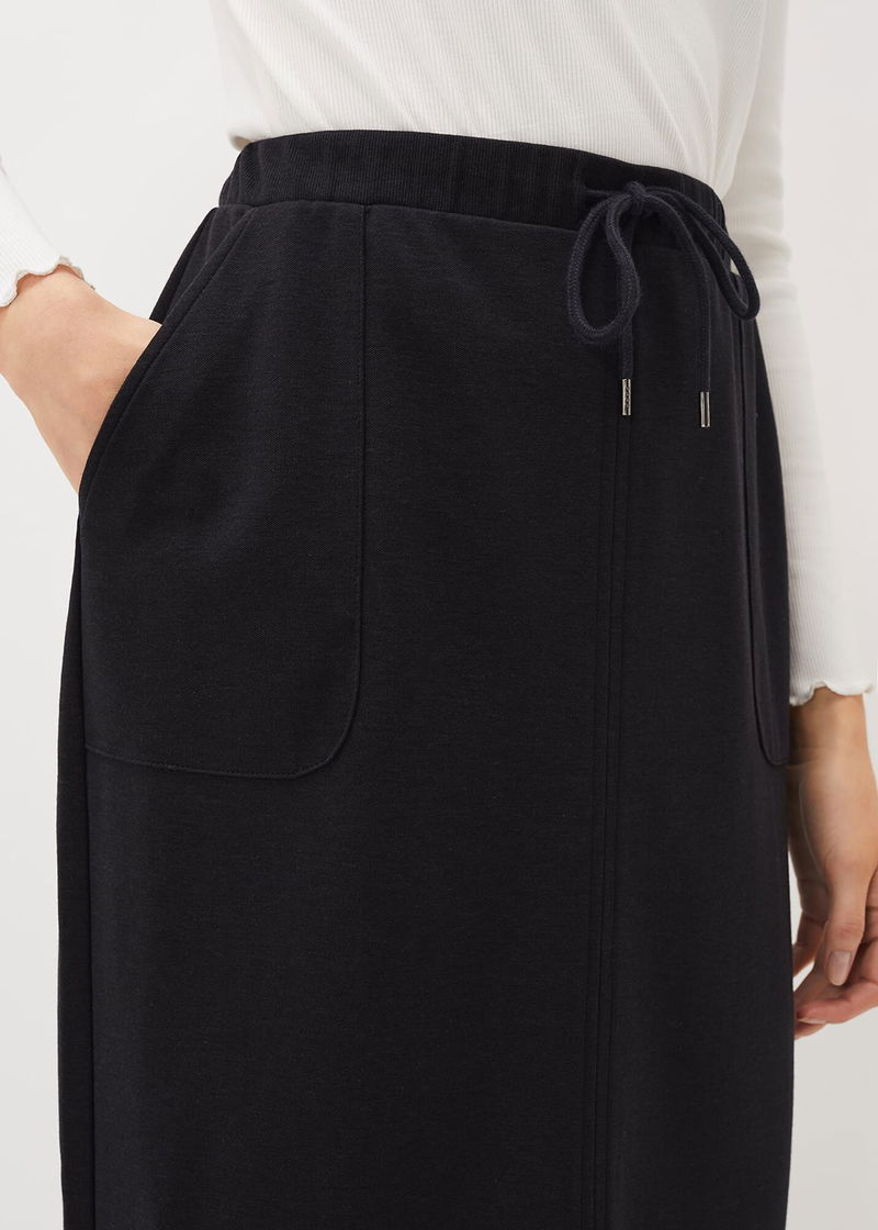 Effortless and comfortable style, you need look no further than the Cassie skirt. Cut from soft jersey fabric, this midi style sits high on the waist and can be adjusted with a drawstring detail. Finished with handy pockets and a front hem split for ease of movement.