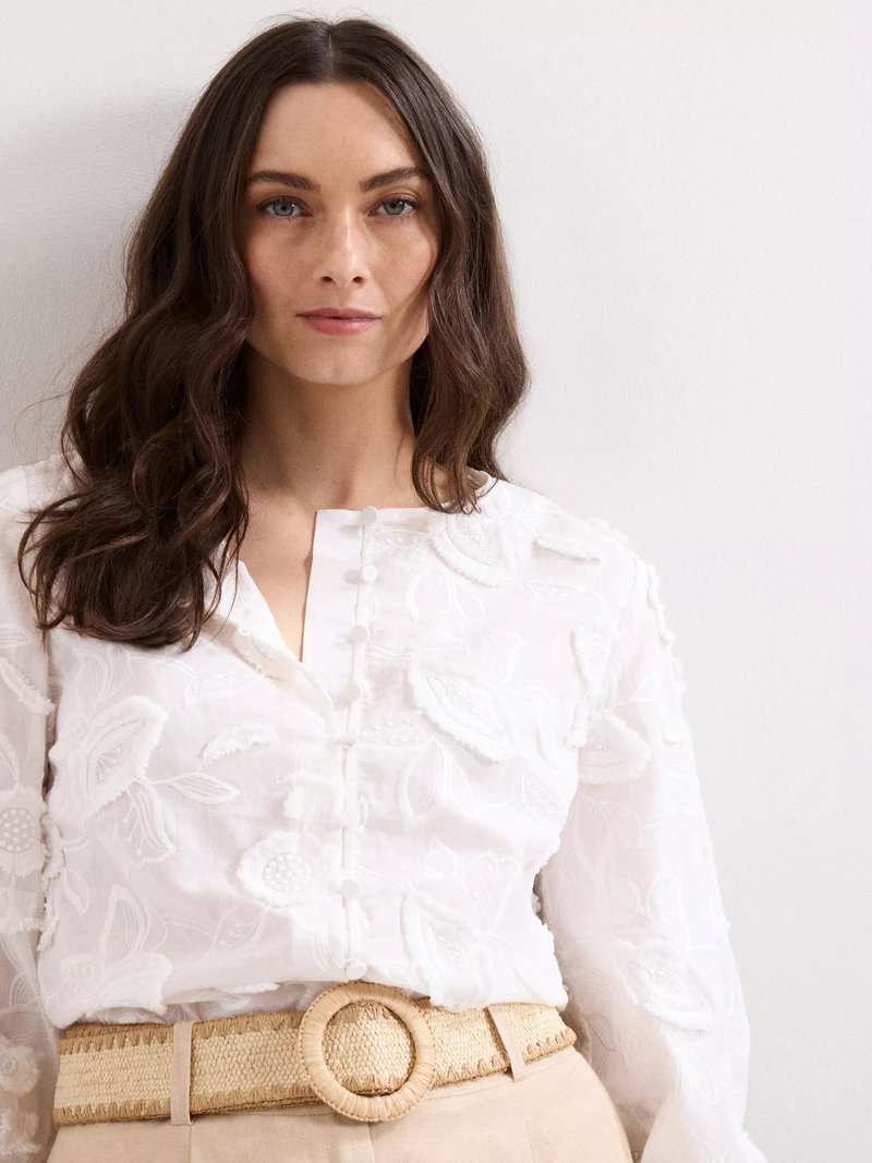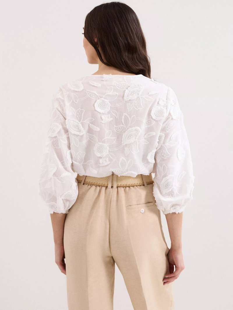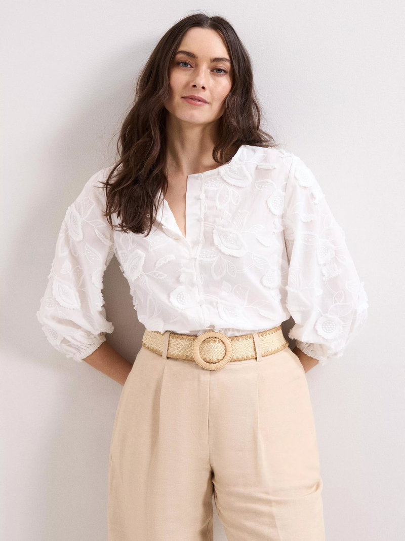 A blouse by Phase Eight, made from cotton for comfortable wear. Featuring a round neck and three-quarter length sleeves, it has a textured effect for a bold look. A great piece for everyday.