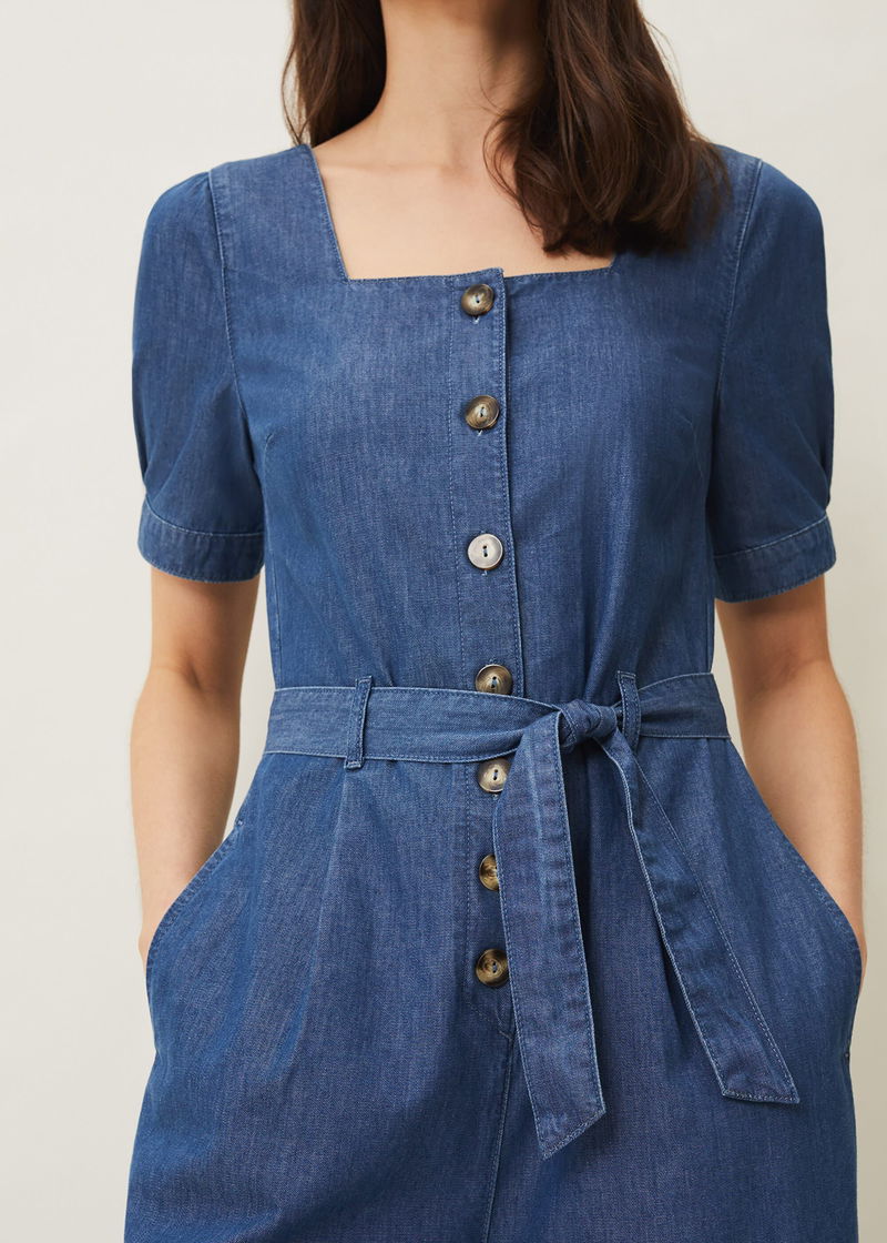 Cut and tailored from 100% cotton, the Delilah Jumpsuit is designed with on-trend puff sleeves, button through front and a modern square neckline. Finished with a matching waist tie to highlight your silhouette and handy pockets. A must-have for your spring/summer wardrobe.