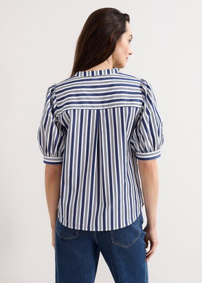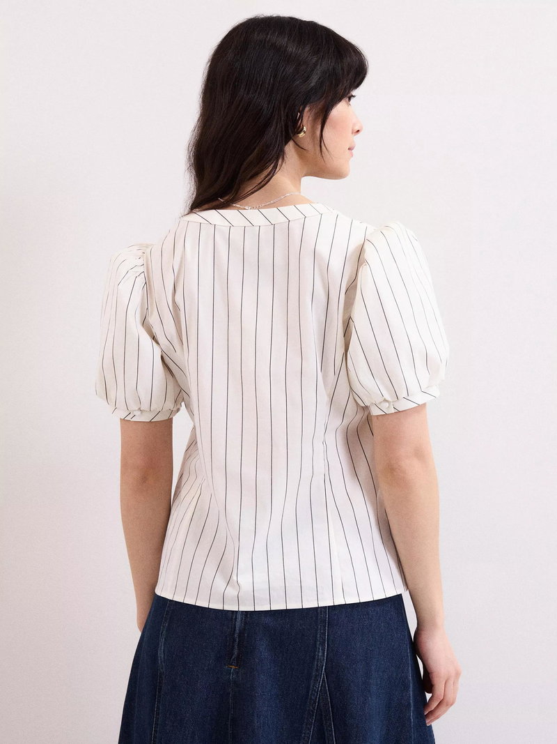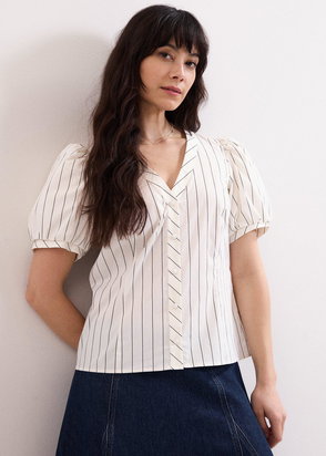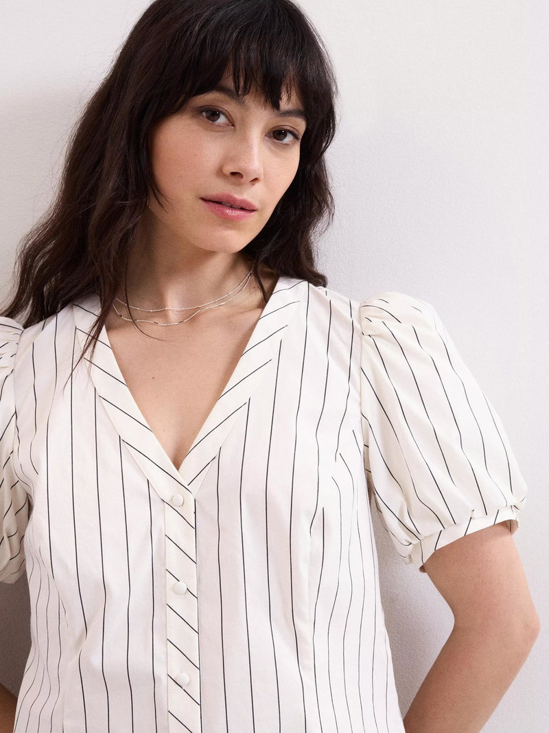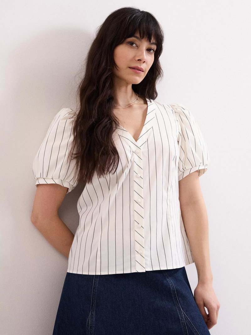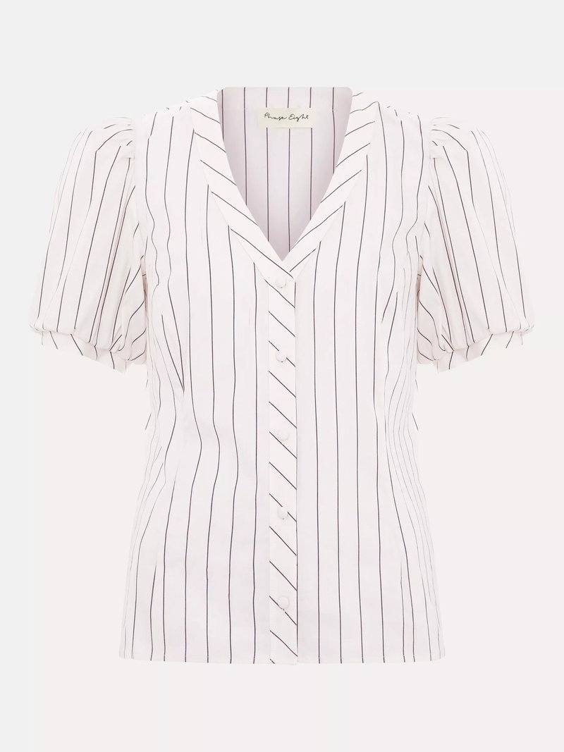 Elora Stripe V-Neck Blouse, White