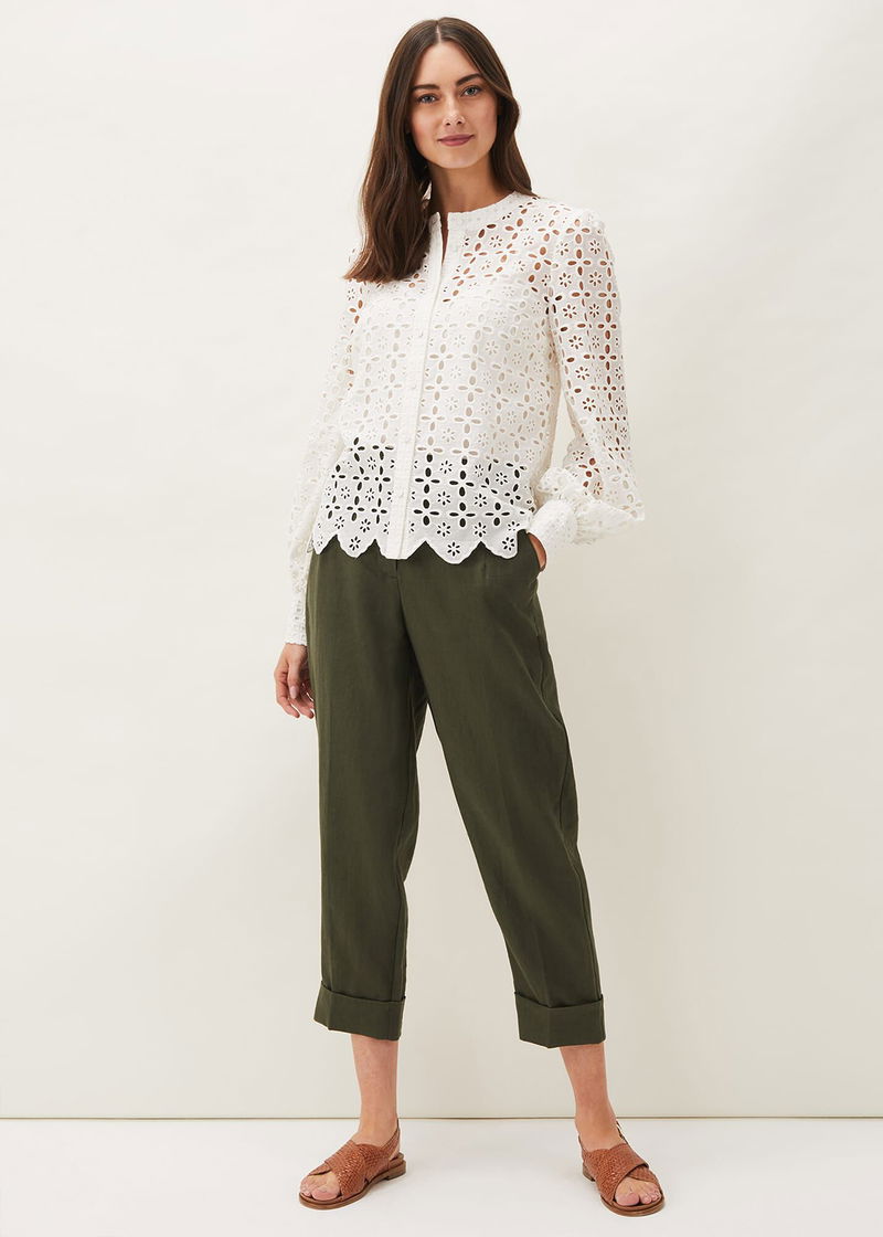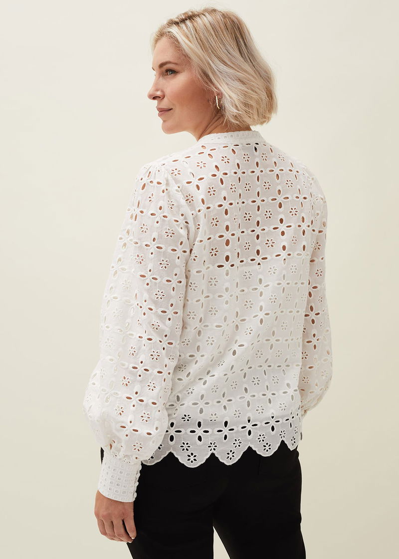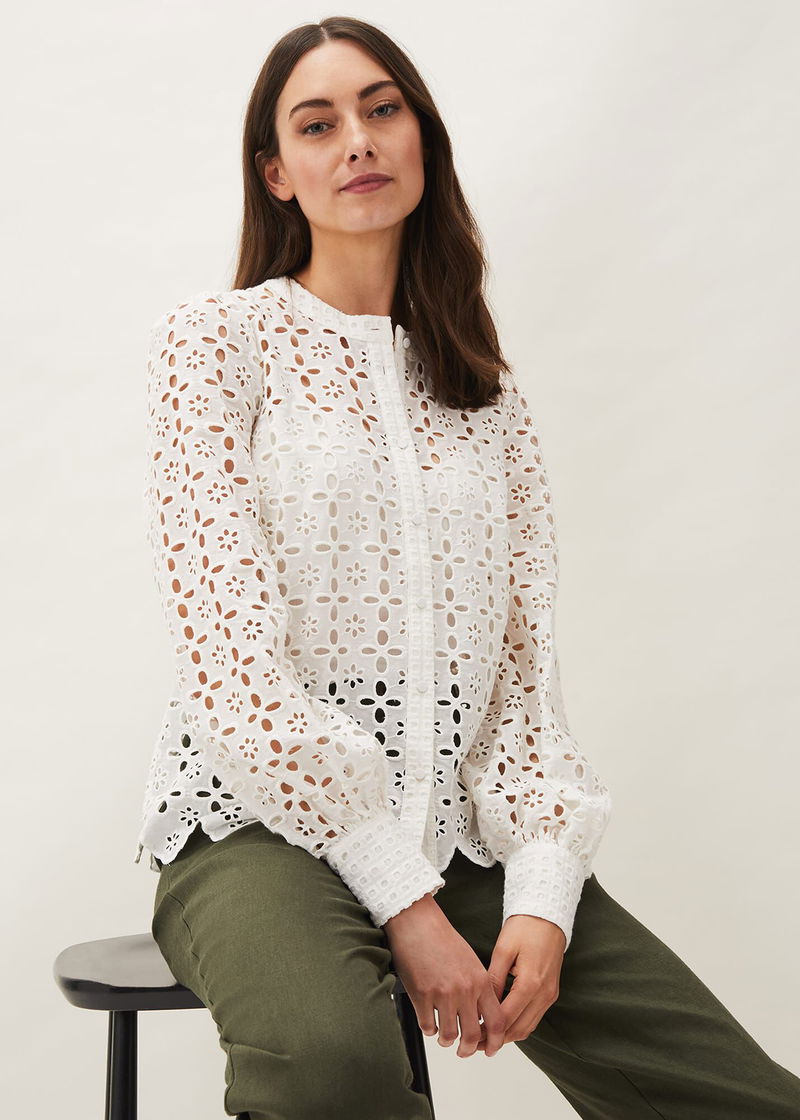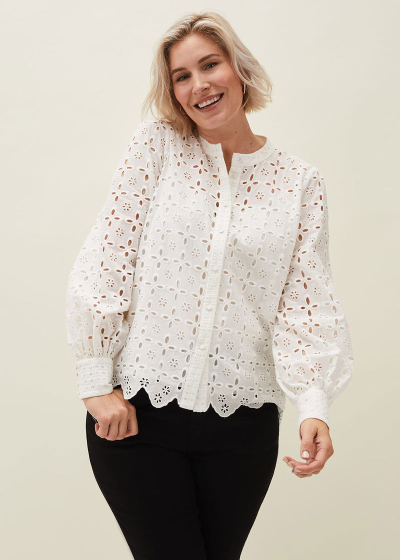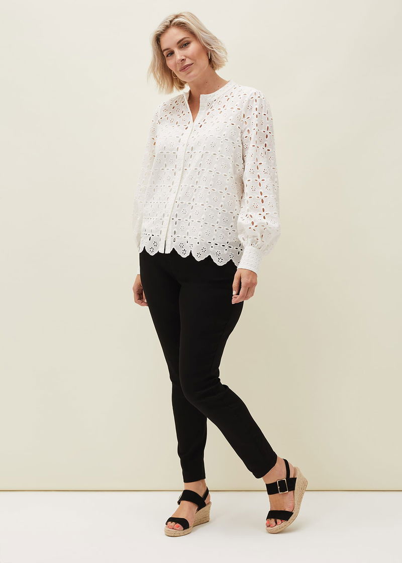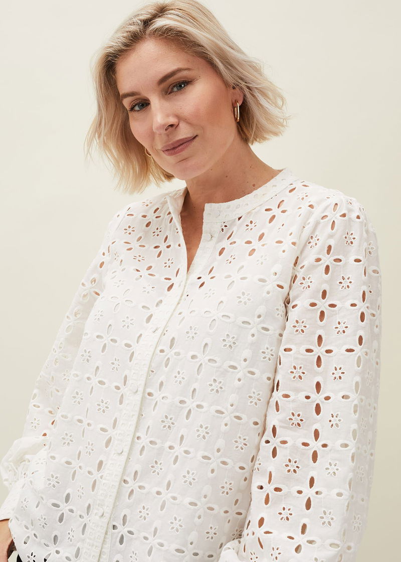 A contemporary and feminine style that is a must-have for your summer wardrobe. Designed with intricate cutwork detailing throughout, our Evianna blouse will see you from work to weekend in an instant.