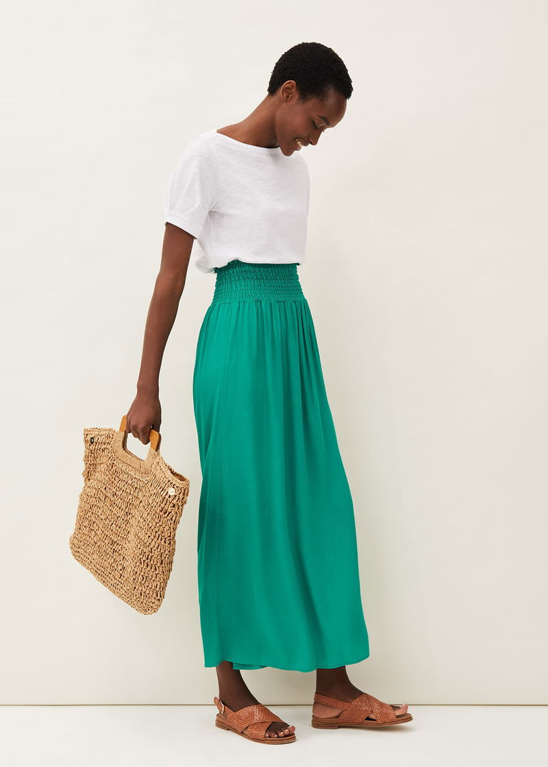 A vibrant skirt that will instantly update your spring/summer wardobe. This maxi style is cut to a high rise and features shirred detailing at the waistband. Wear everywhere from sun-drenched strolls to working from home.