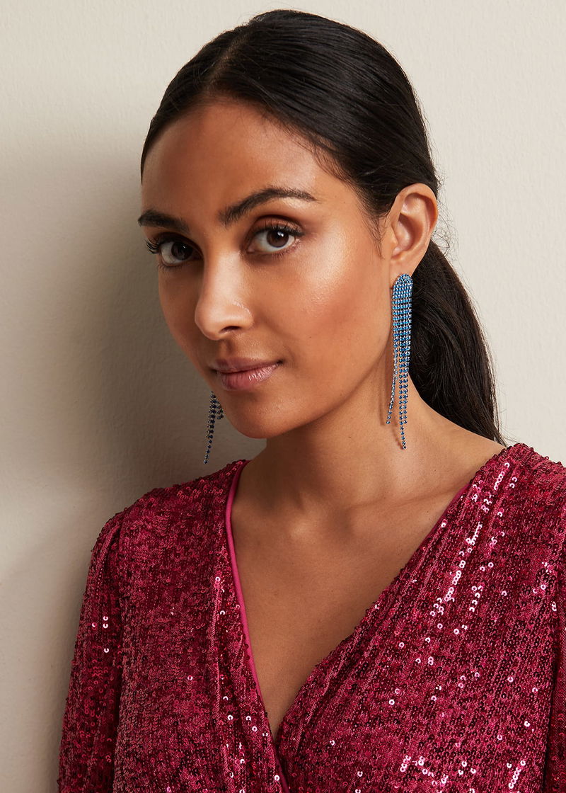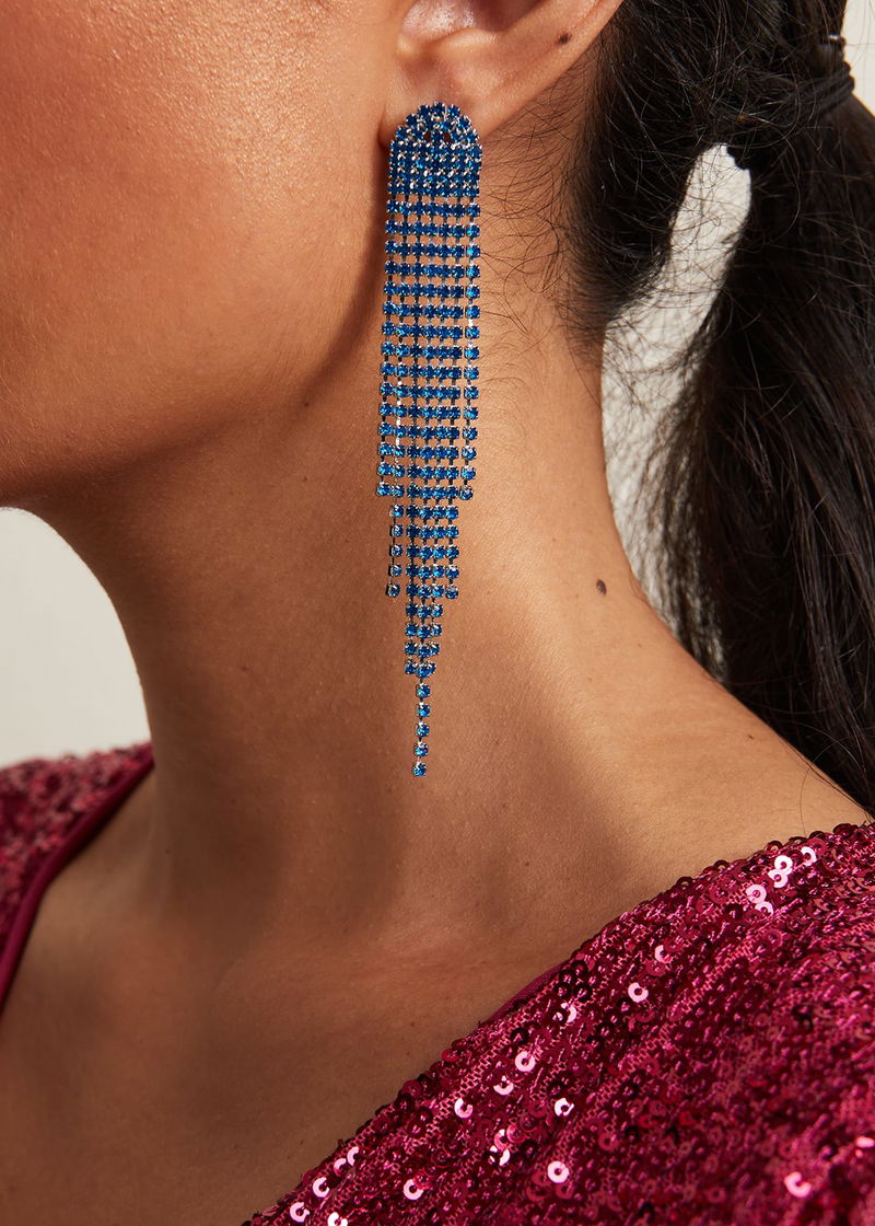 These blue stone drop earrings are perfect to make a statement. Pair with matching blue heels and a clutch bag to coordinate your look.