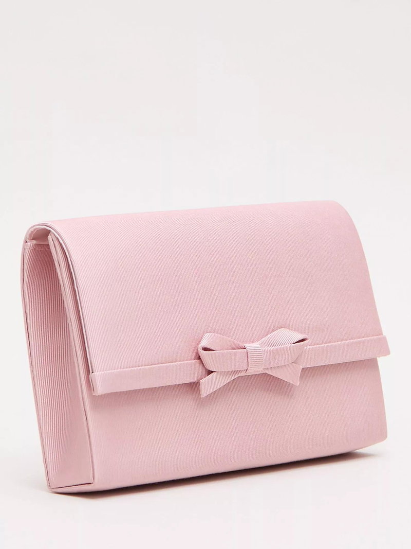 Grosgrain Bow Clutch Bag, Pale Pink