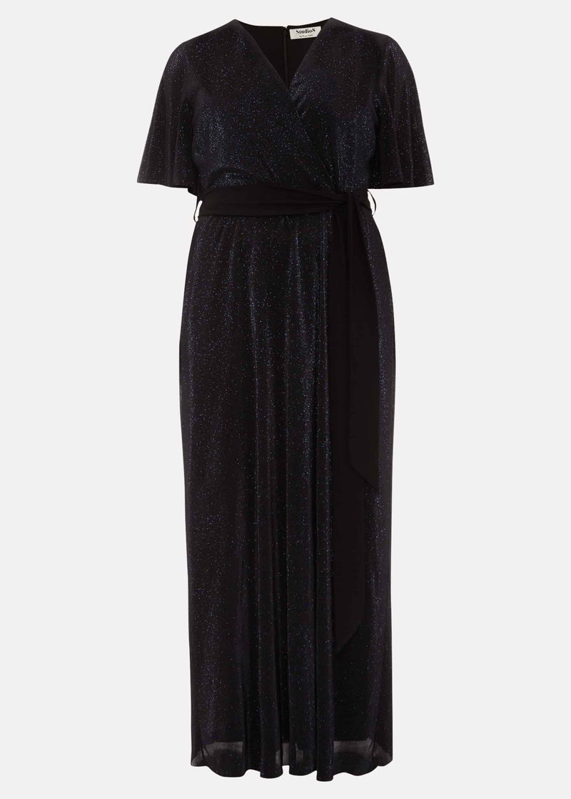 Studio 8 by Phase Eight: Premium plus size style. Turn heads and command attention in Phase Eight's Hattie Dress, the maxi style that will have you shining all night long. Designed with metallic thread woven throughout, elegant angel sleeves and a contrast waist tie to highlight your silhouette. Just add your favourite party shoes and a glass of champagne.
