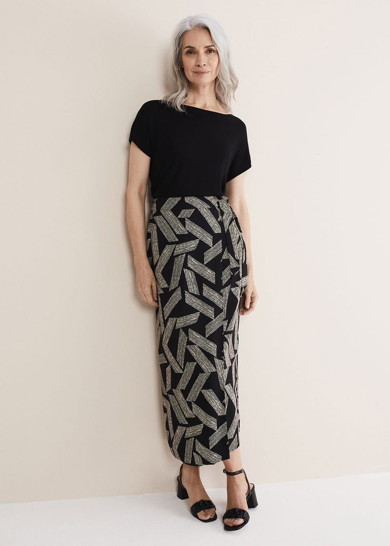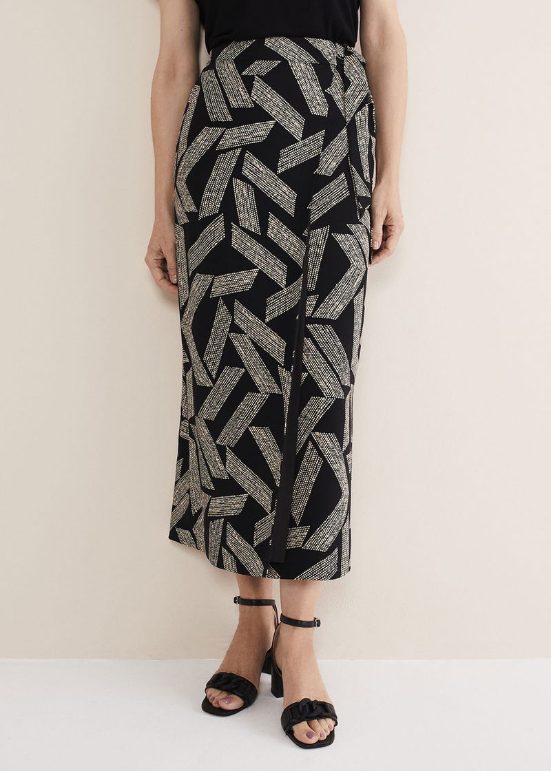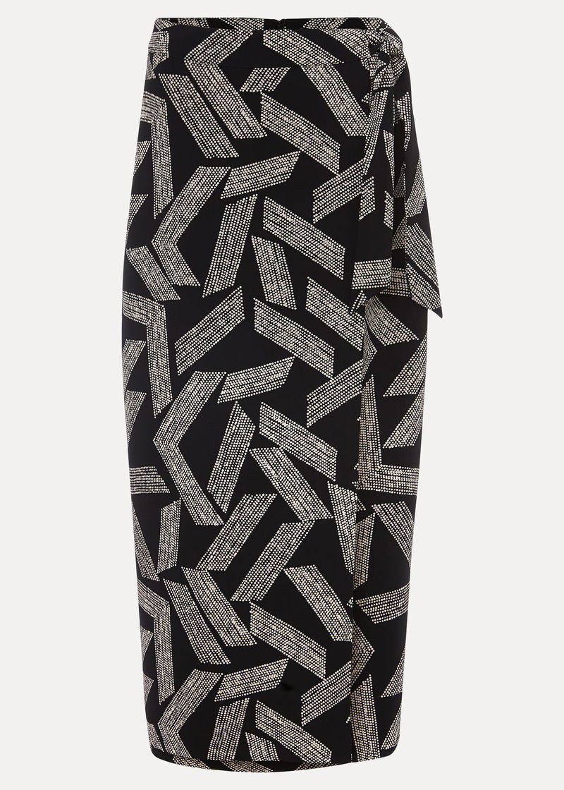 The perfect skirt to add to your wardrobe. Our Hatty wrap skirt features a burnout design and a tie belt. Style with a black top and heels to bring this look together.This style is responsibly sourced. This style has been made from recycled polyester, giving materials that would have ended up in landfill a new lease of life.