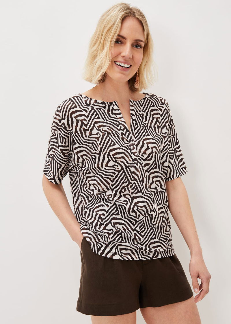 Phase Eight’s new favourite zebra print now comes in an amazing top. Crafted from 100% linen, this airy top features a notched neckline, 1/2 sleeves and a loose fit. We wear ours with shorts and wedges for an easy summer look.