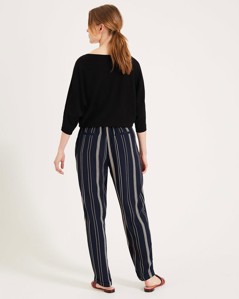 Instantly update your daywear with these striped, straight leg trousers, designed with a matching waist tie to enhance the silhouette and finished with two working pockets.