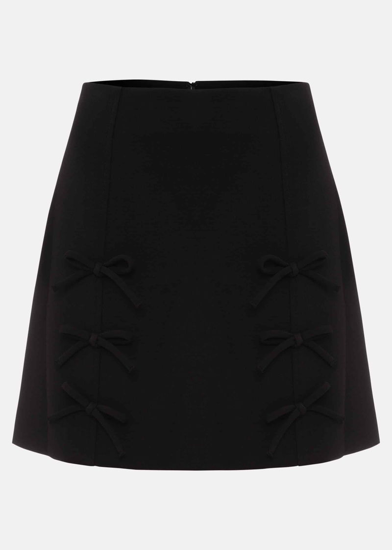 A fail-safe black skirt with a difference, our Kizzy style features a row of delicate bows on at the front to give your outfit a rebellious edge. Styled here with our Emersyn Lace Shirt and boots.