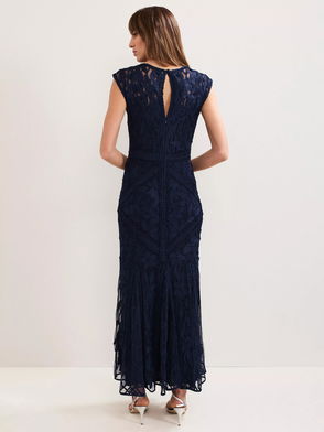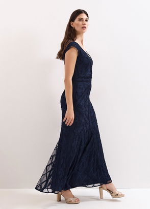 A Phase Eight maxi dress. Its elegant sheath silhouette and delicate lace embroidered details give you versatile confidence for party or evening plans. The cap sleeves and V-neck flatter, ensuring you stand out and feel your best.