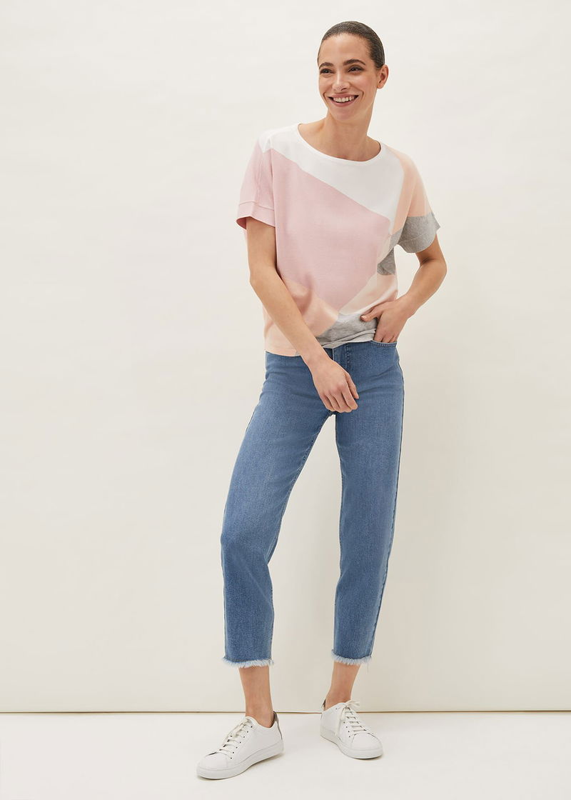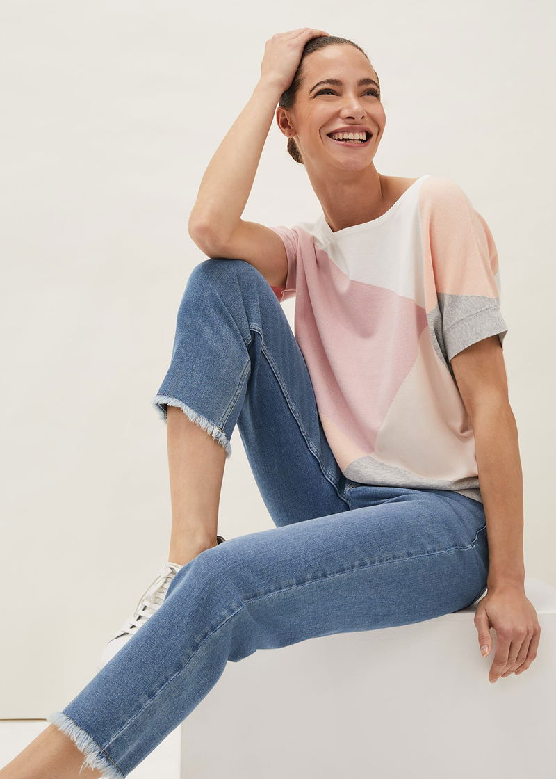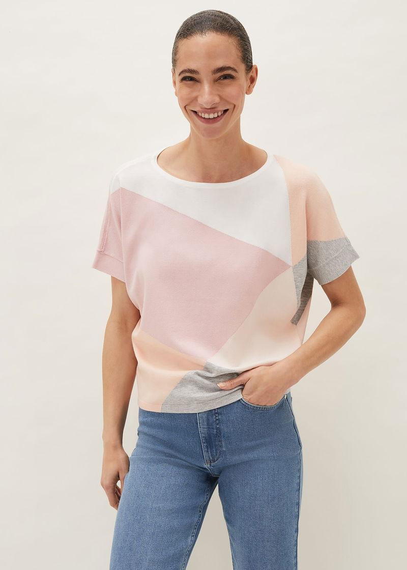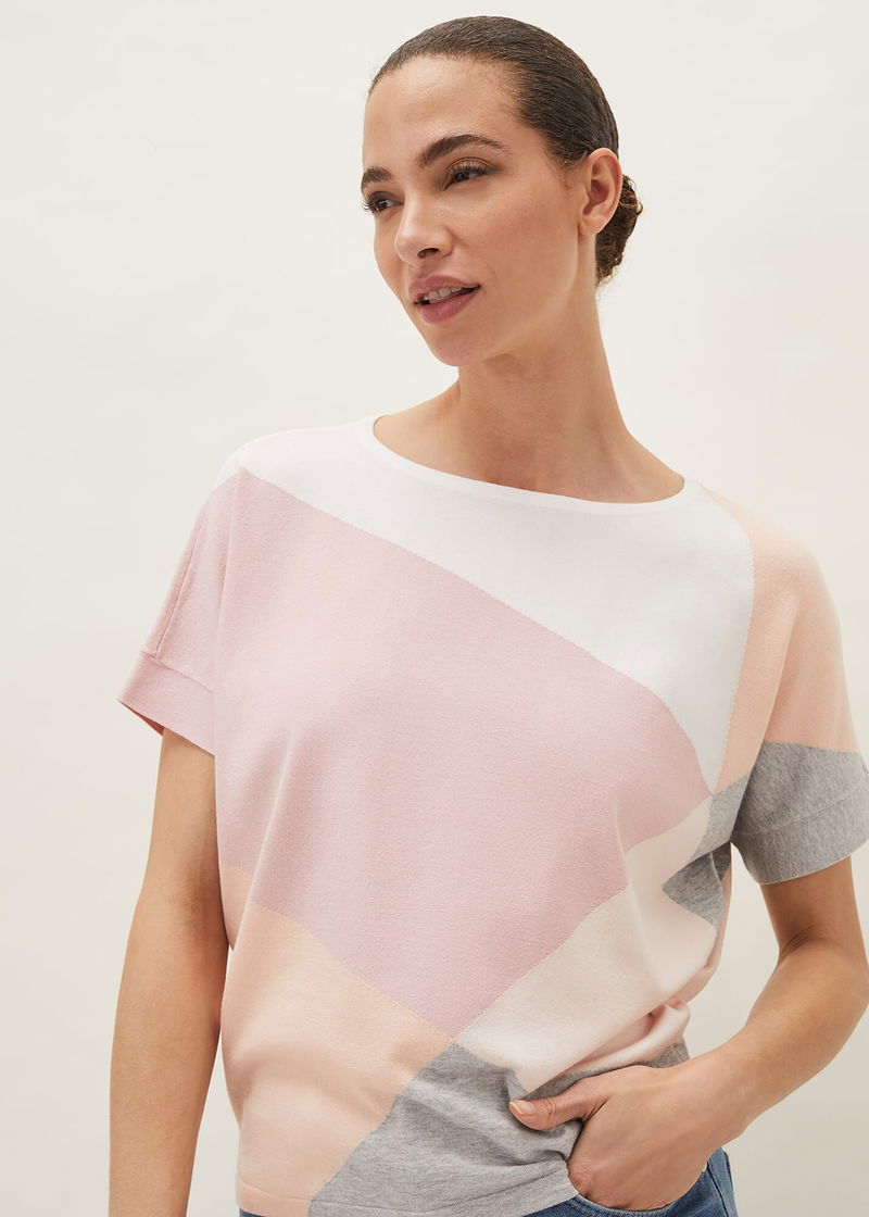 Elevate your knitwear collection with this abstract colourblock jumper. With a super soft texture and relaxed fit, Leana is sure to become your new go-to fine knit jumper.