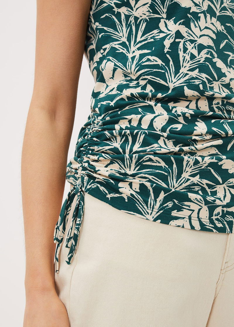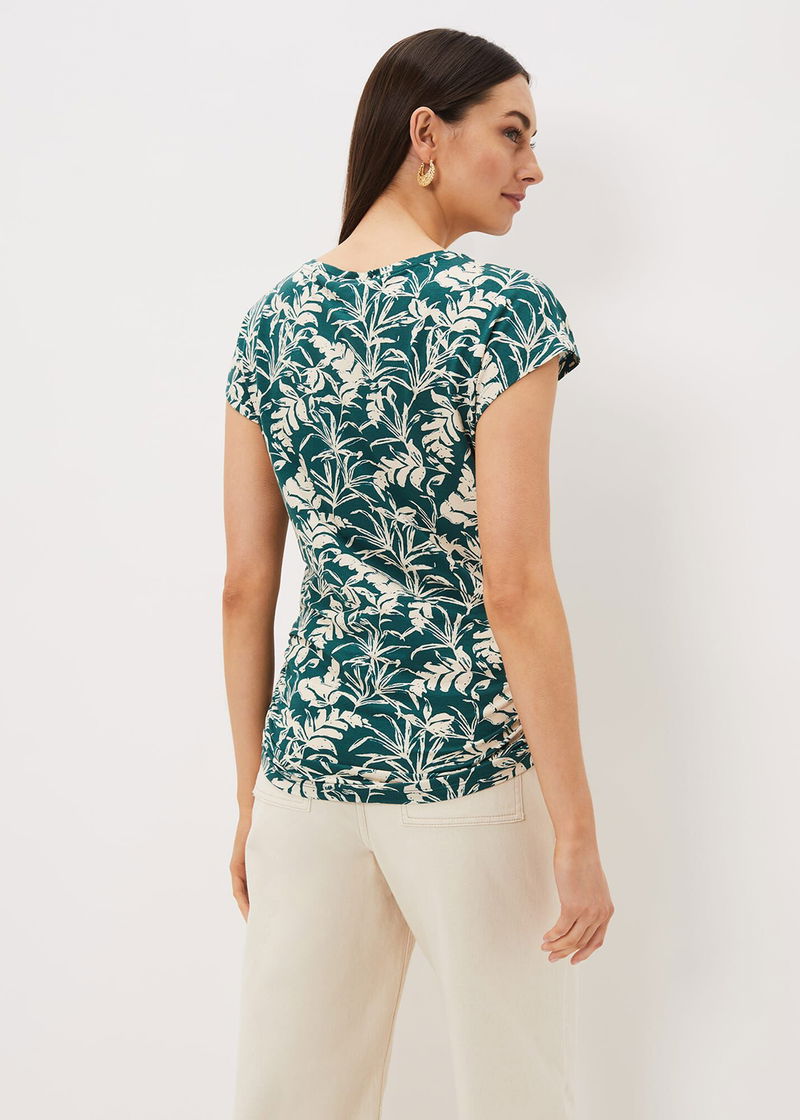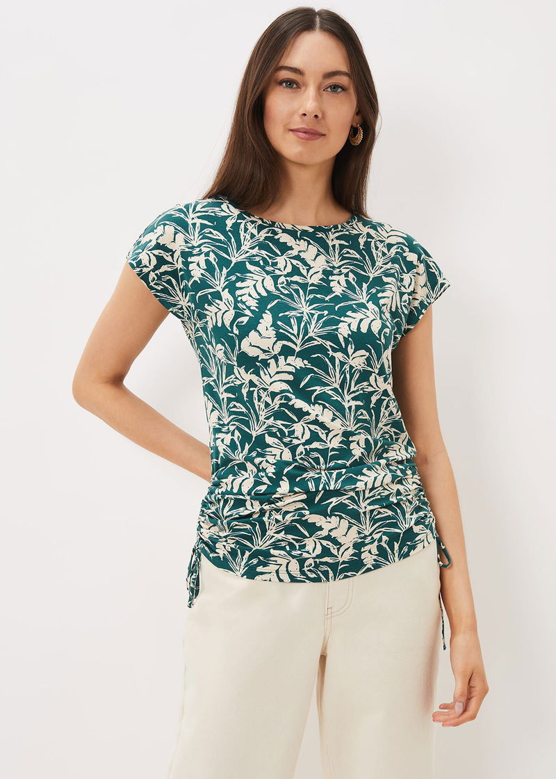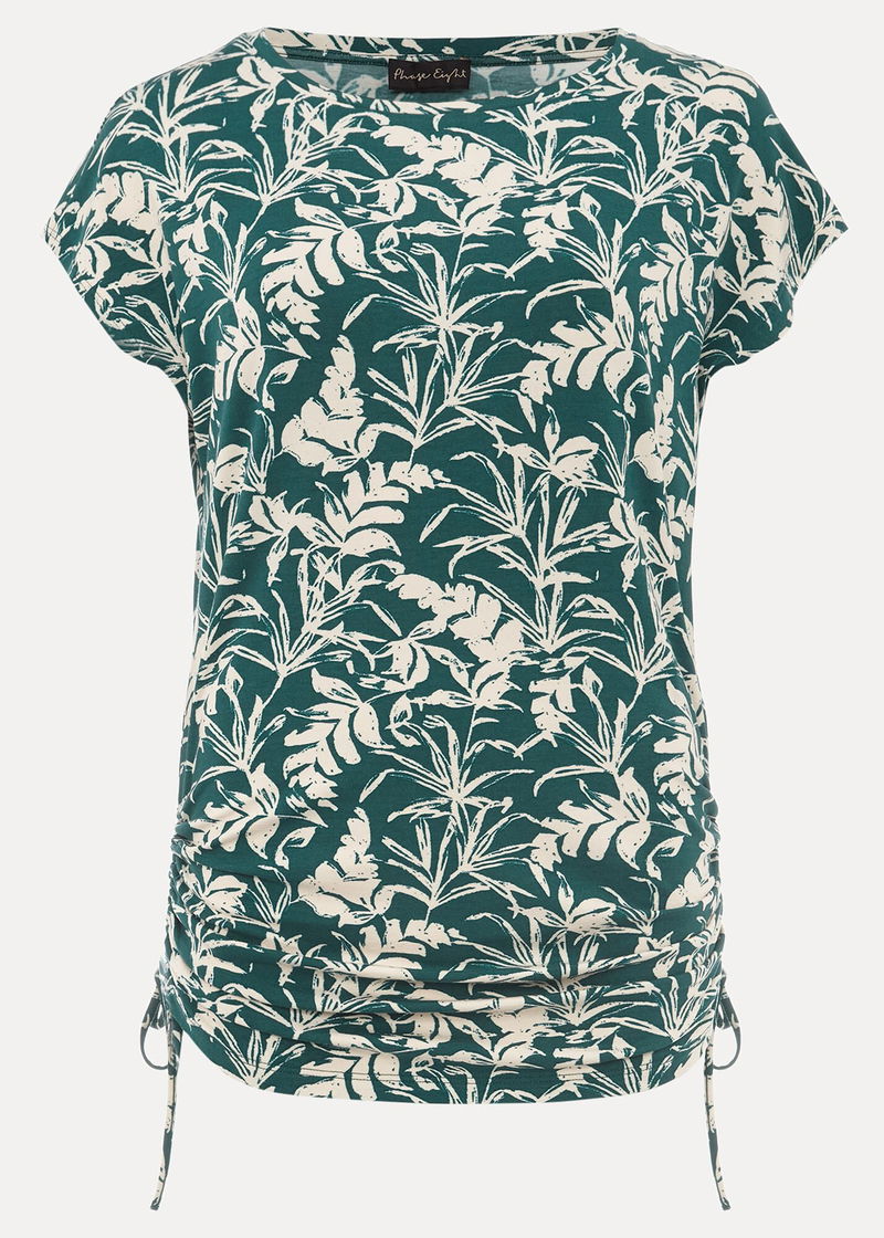 A versatile leaf print top that will look perfect with your everyday trousers and skirts. Cut from soft jersey and designed with a slim fit, our Lissa top features short sleeves and feminine ruching on the sides. We wear ours with wide leg jeans and sandals for a contemporary, everyday look.