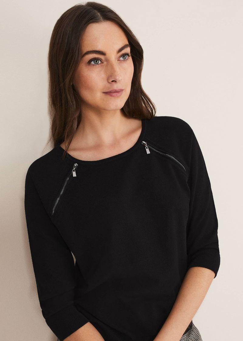 A modern addition to your jumper collection. Designed with statement double functional zip details, the relaxed Lolan jumper is complete with a soft hand feel and ribbed accents. Wear with jeans or trousers for a smart-casual look.