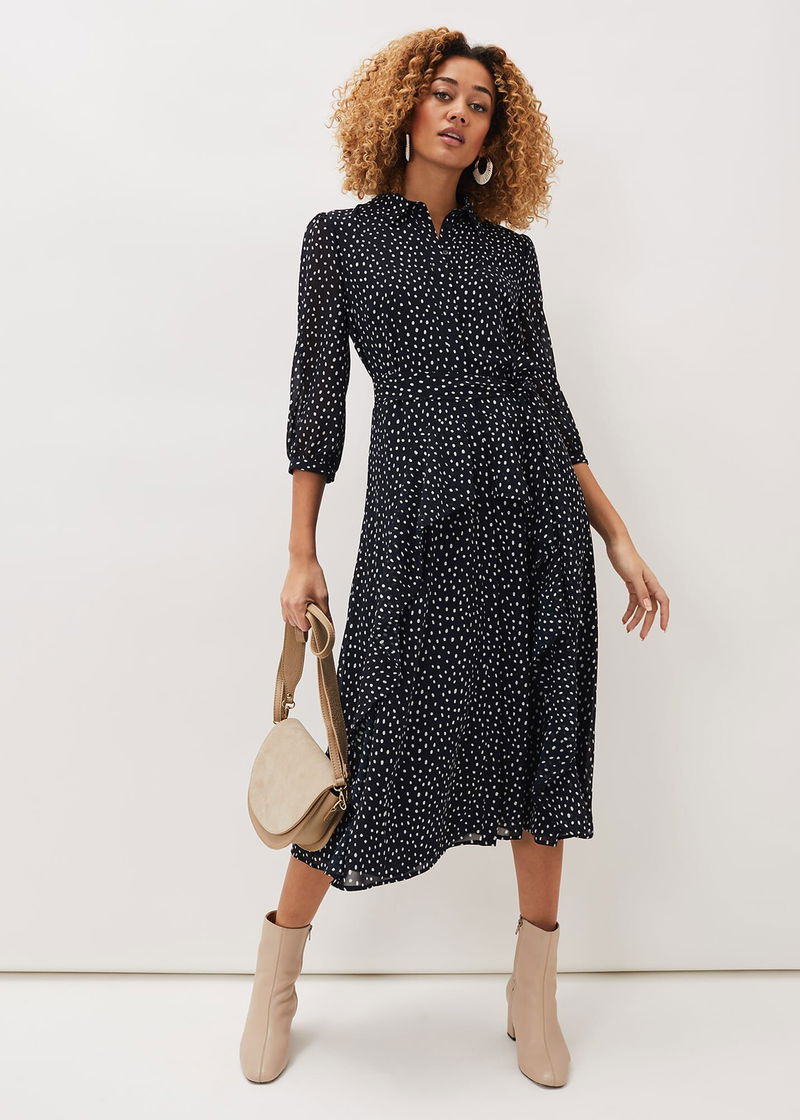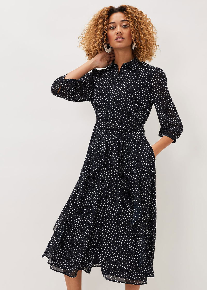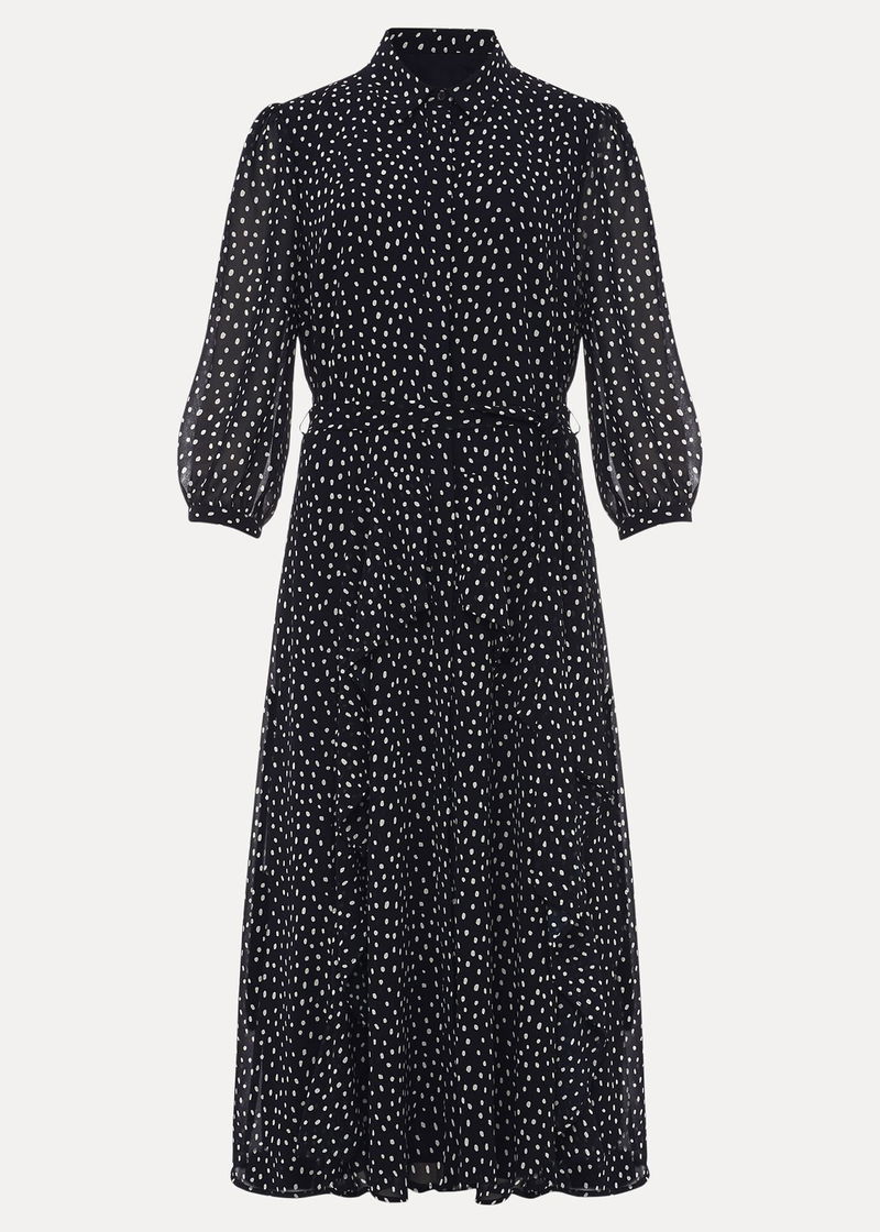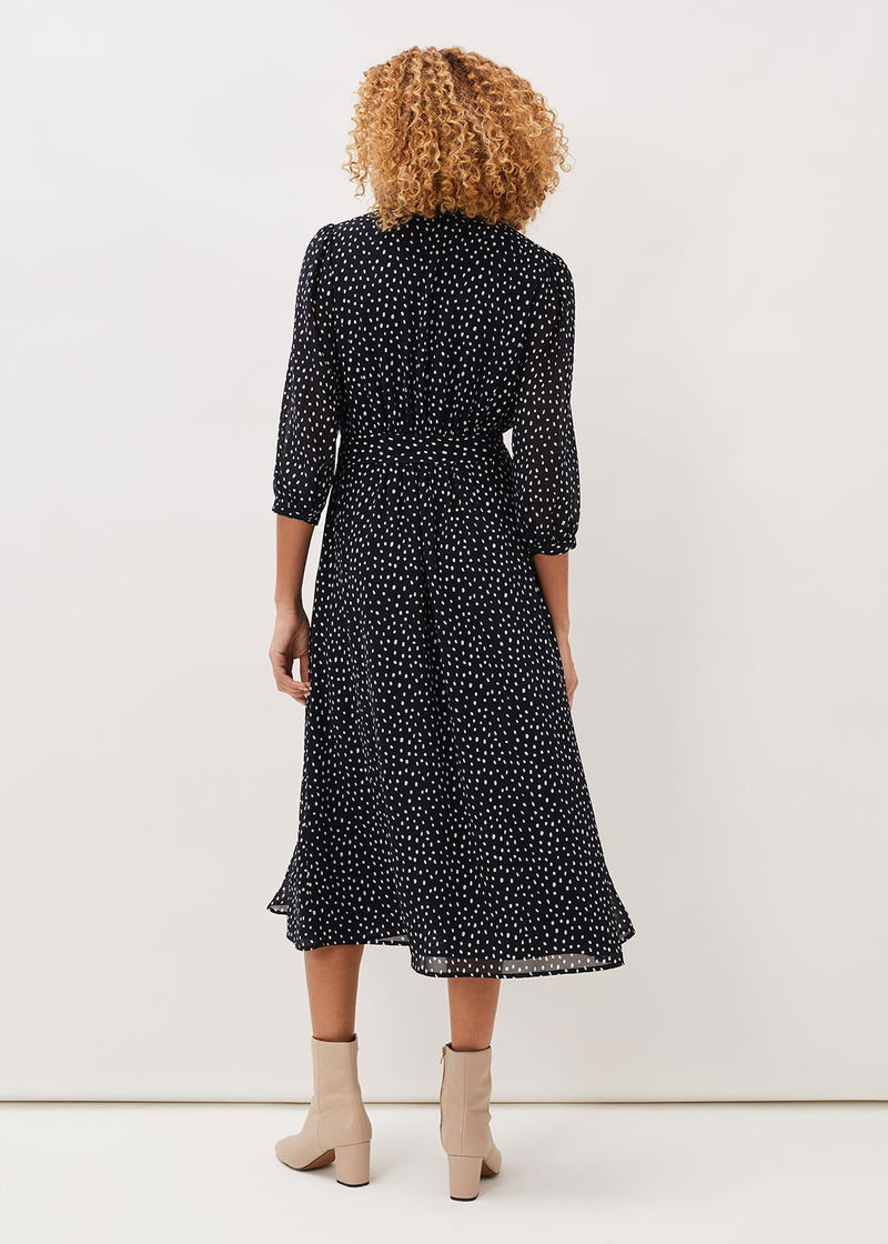 Perfect for work and everyday wear, our Luciana dress is designed with an on-trend spot print throughout. Falling to a versatile midi length, this style is finished with feminine frill detailing through the skirt.