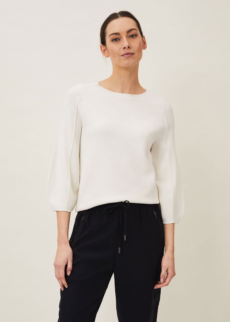 We love the statement puff sleeves and exposed seam detailing on our Megan Jumper. An easy dress up/dress down investment to make this season.
