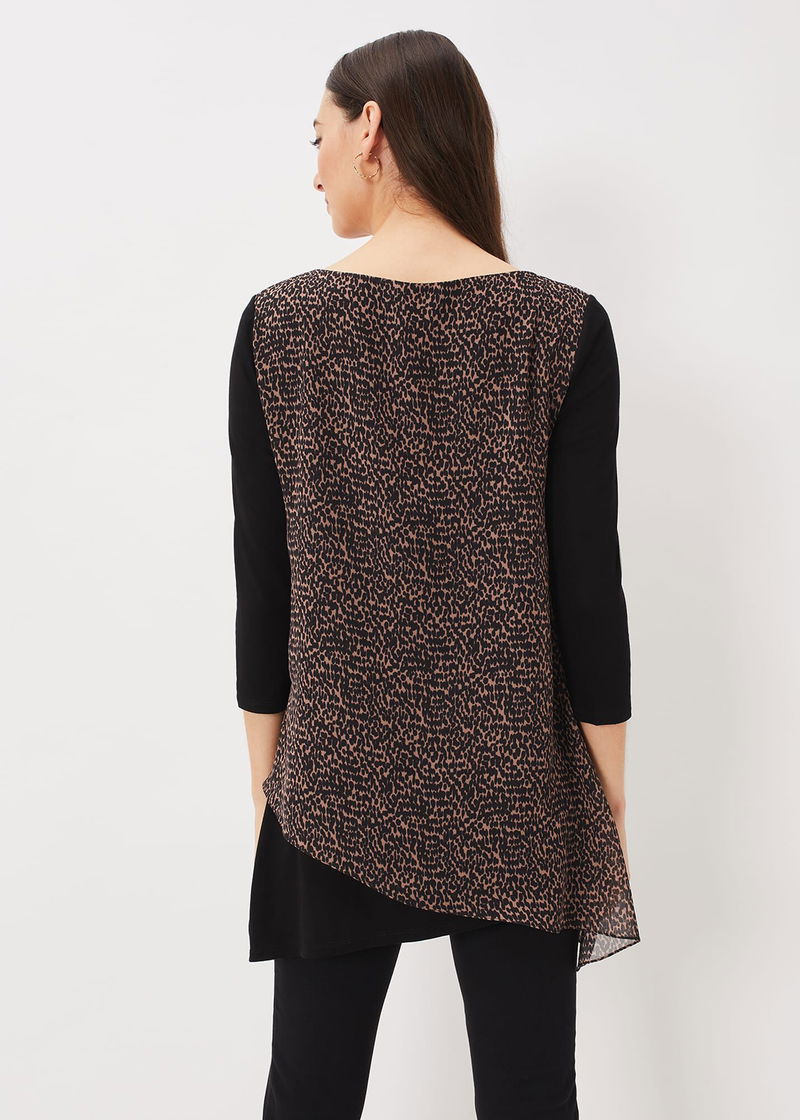 You'll never want to take this top off. Designed with a round neckline, 3/4 length black sleeves, the bodice features an animal print that's perfect to pair with jeans for a casual look.