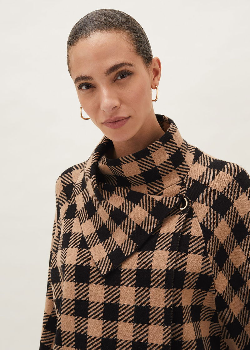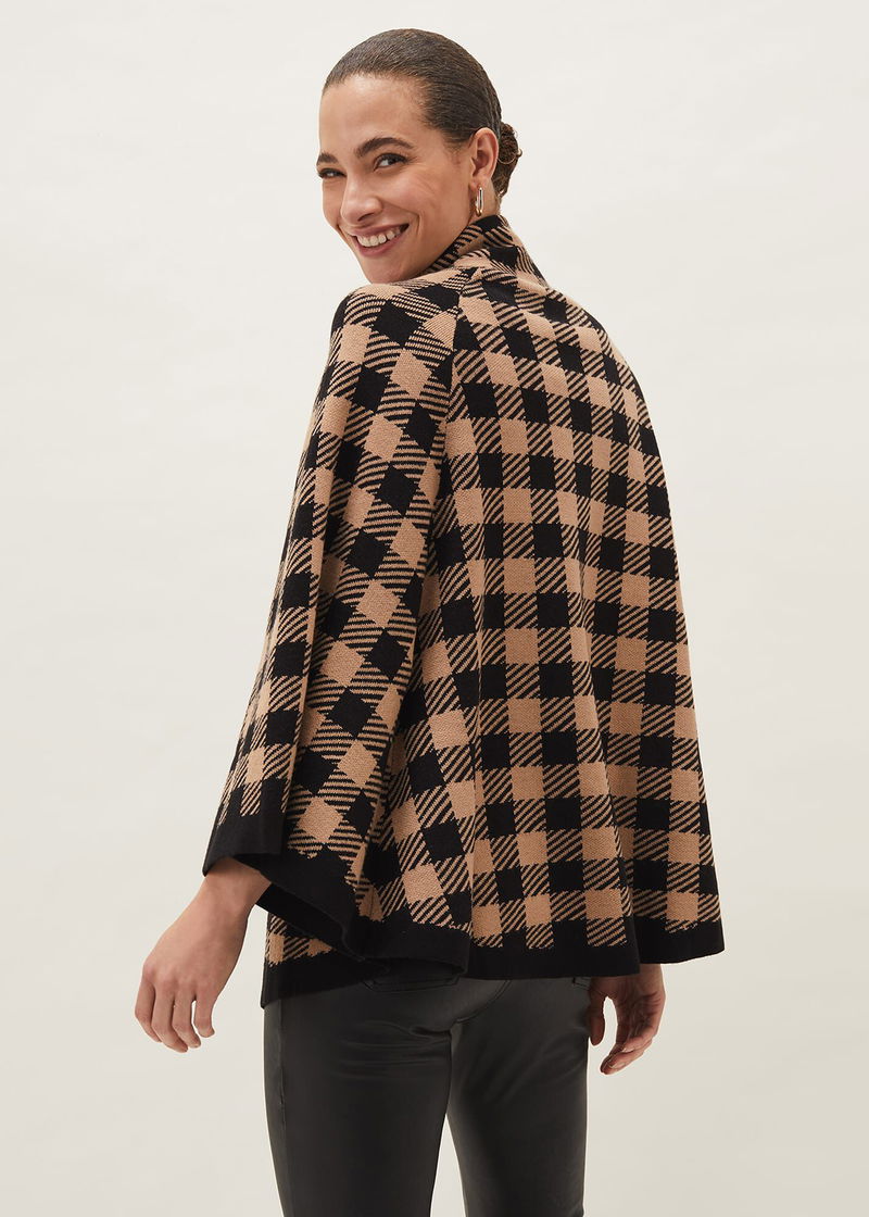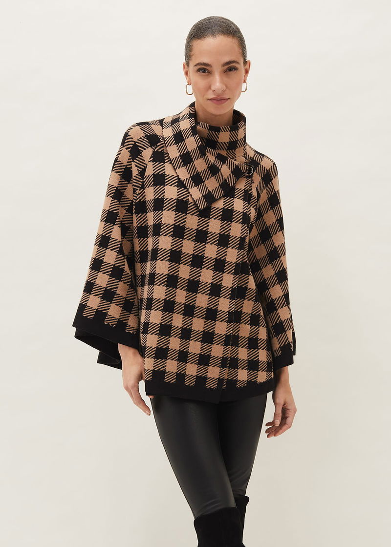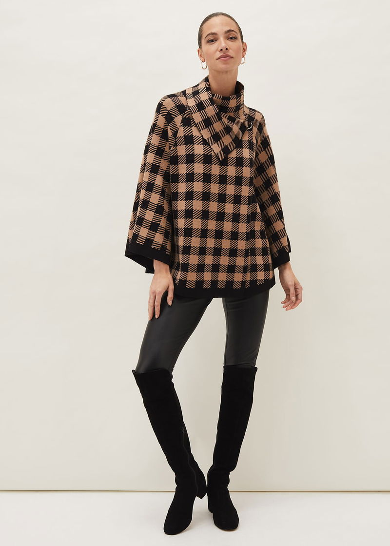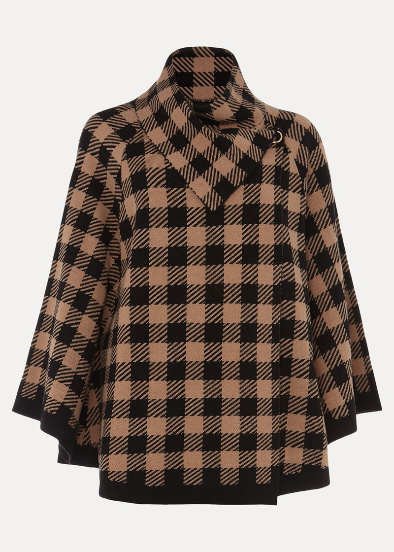 The Miley check cape is so cosy you won't want to take it off. Designed in an oversized fit, its perfect for wrapping around you when the night draws in. Fastens with press stud fasteners.