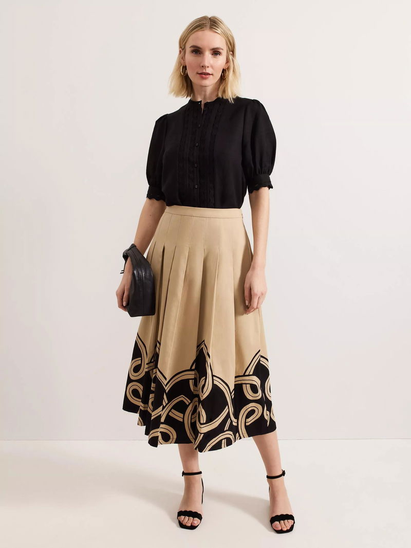Slotting into your AM-PM wardrobe, meet the Ottilie top. This top is made from a breathable linen blend. Woven detailing at the front provides a modern update whilst feminine puff sleeves add subtle dimension to the style. For a look with evening appeal we wear ours with a structured skirt and our favourite heels.