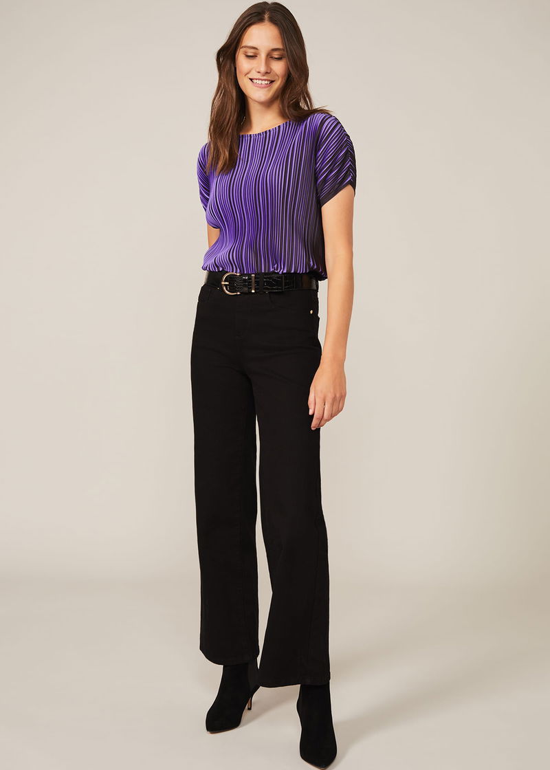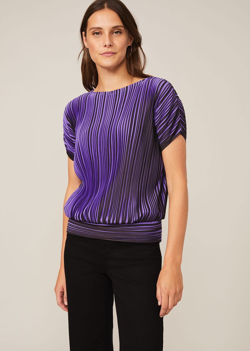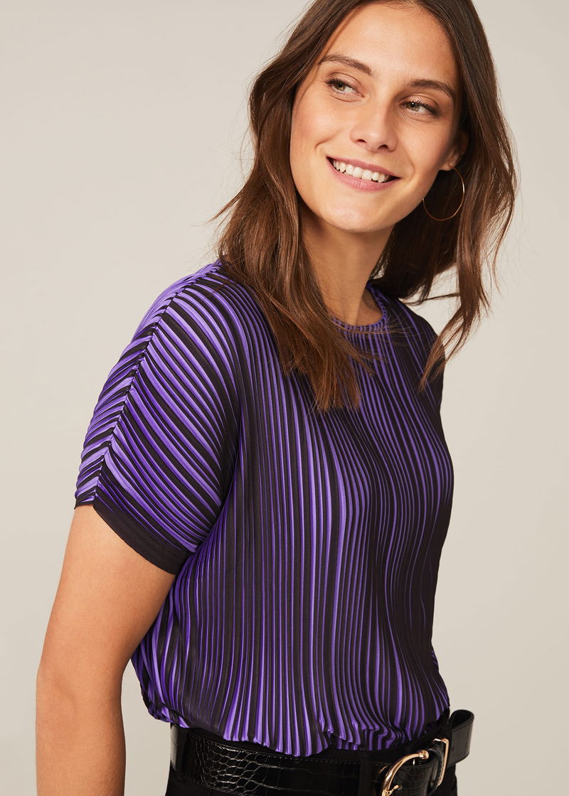 Update your essentials with this striking purple top, designed in a textured jersey fabric. Easy to dress up or down and created with short sleeves and a blouson hem.