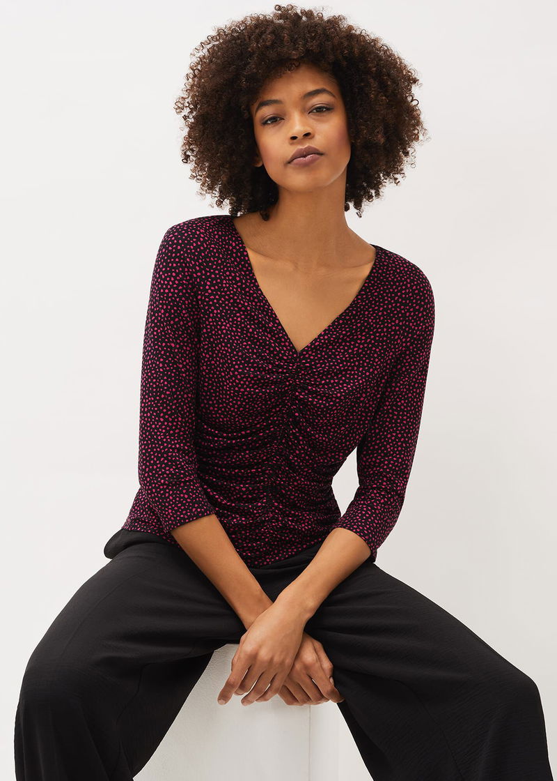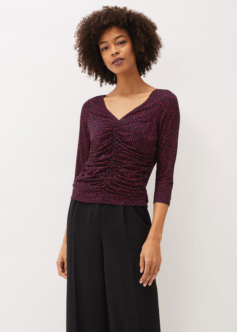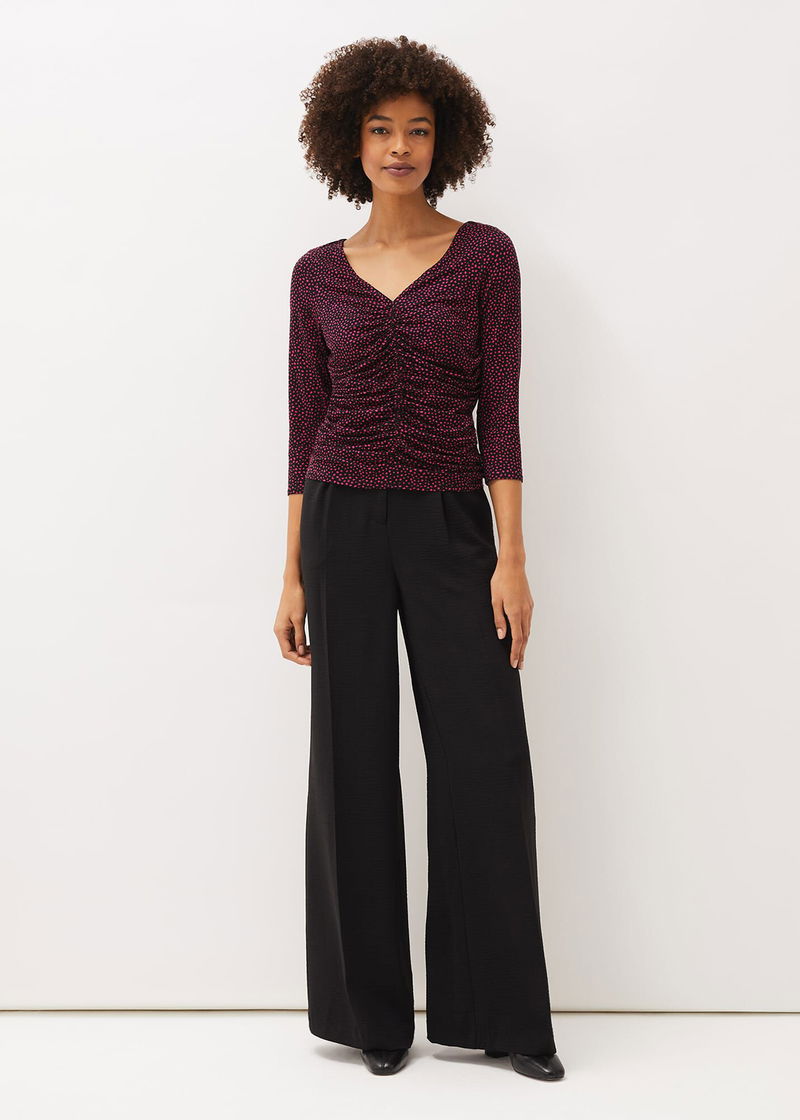 Hit refresh on your wardrobe separates with this versatile jersey top. Phase Eight added feminine ruching through the front for a flattering finish. We're wearing ours with smart wide leg trousers for an easy take on workwear.