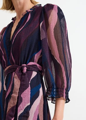 Discover the perfect piece to dress up or down with ease. This printed midi dress features an eye-catching design. Elevated details include frill detailing at the collar and cuffs for a feminine edge. Flowing through to a dropped hem for soft movement, we love to style ours with boots for a desk to dinner look.