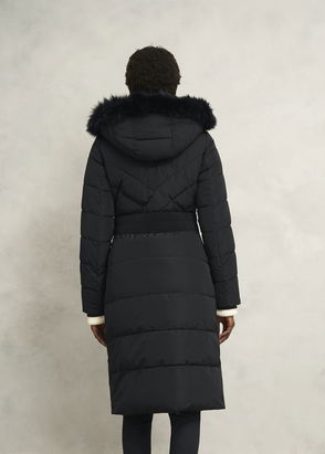 A puffer coat is a staple of the modern wardrobe and the Hollie puffer is no exception. Designed in classic black with a quilted pattern, our coat features a detachable fur collar, large fleece lined pockets, elasticated cuffs and an adjustable belt. The cosy hood and recycled feather and down filling promises to keep you warm on even the coldest days.