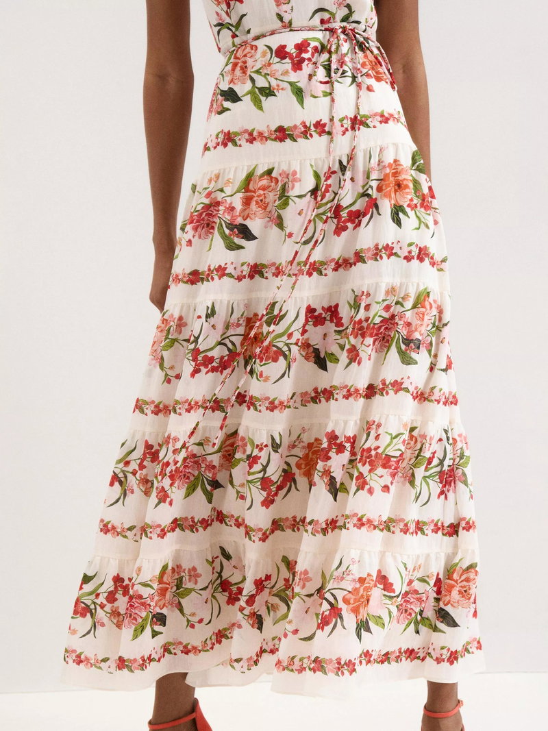 This petite maxi dress features a fit and flare silhouette with tiered detail, designed to move with you. Its playful floral pattern and comfortable lining keep you ready for any gathering, while the concealed zip ensures effortless wear all day.