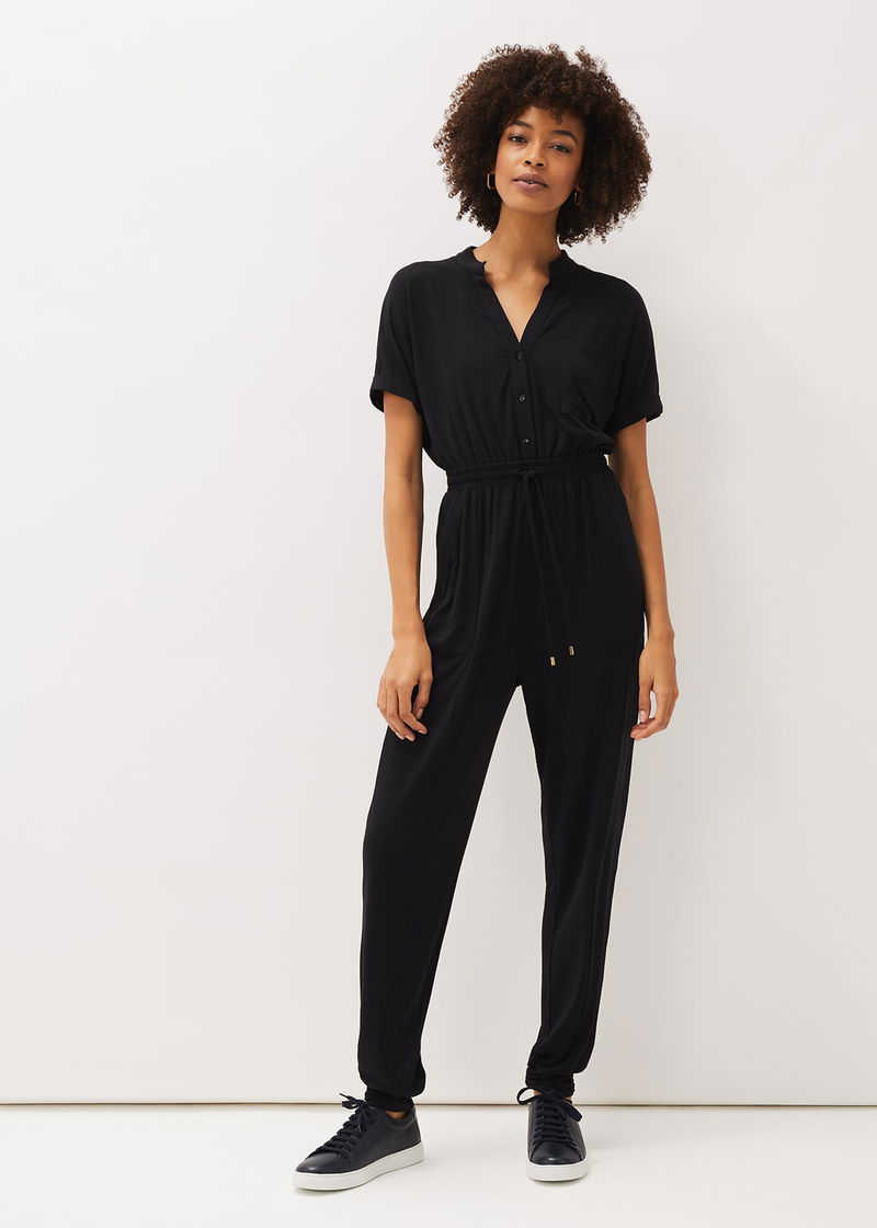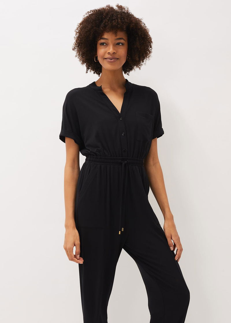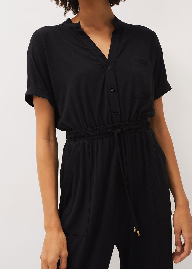 Designed in super soft jersey fabric, our Raphaelle Jumpsuit is the perfect wear all-day, every day outfit. Relaxed in fit, it falls into a tapered leg and is framed by short sleeves and an adjustable drawstring waist.