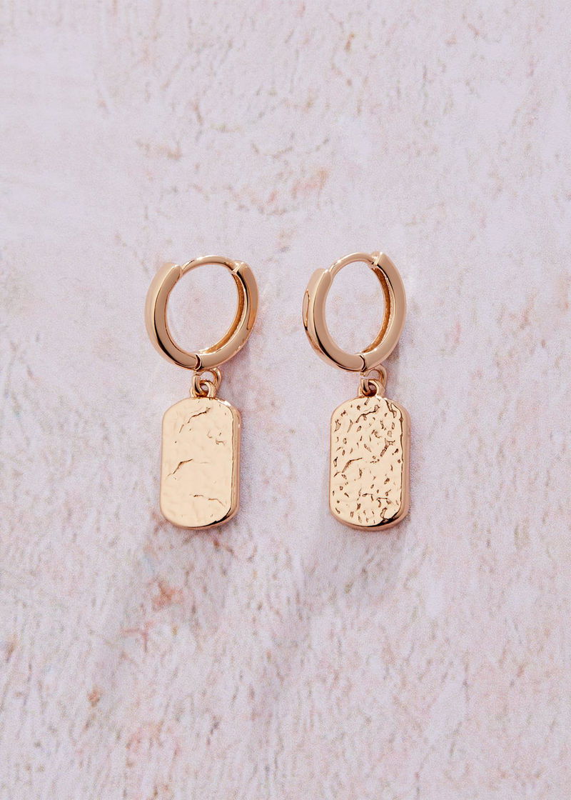 Simple yet stylish, these gold earrings feature a hammered textured pendant at the drop. Perfect for adding a touch of extra glamour to your day and night looks.