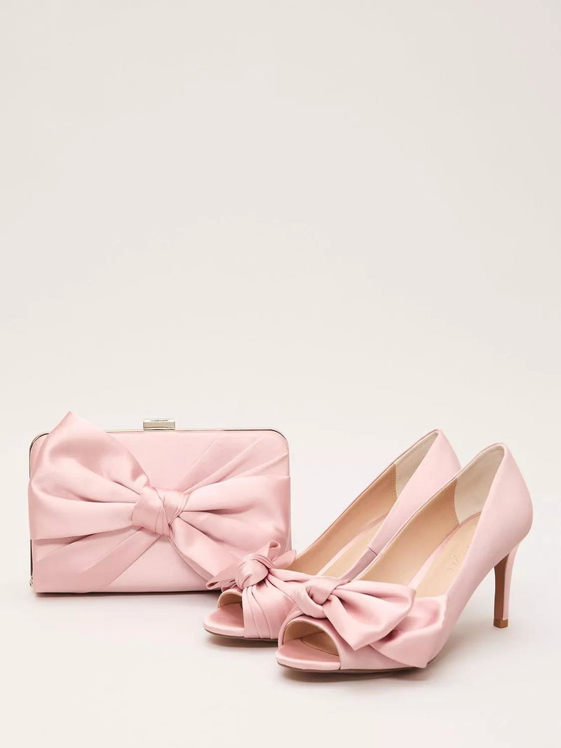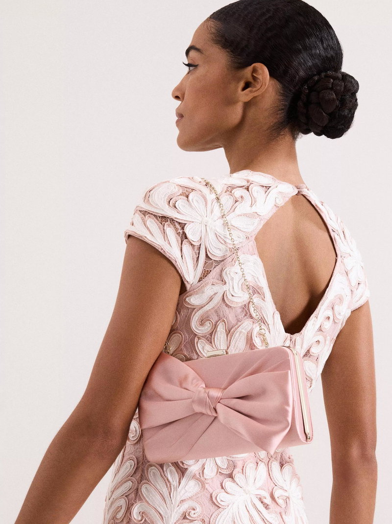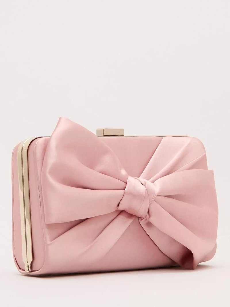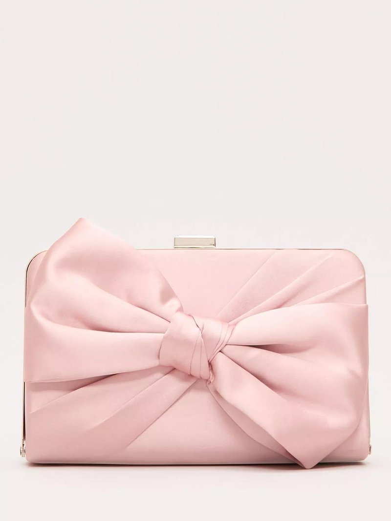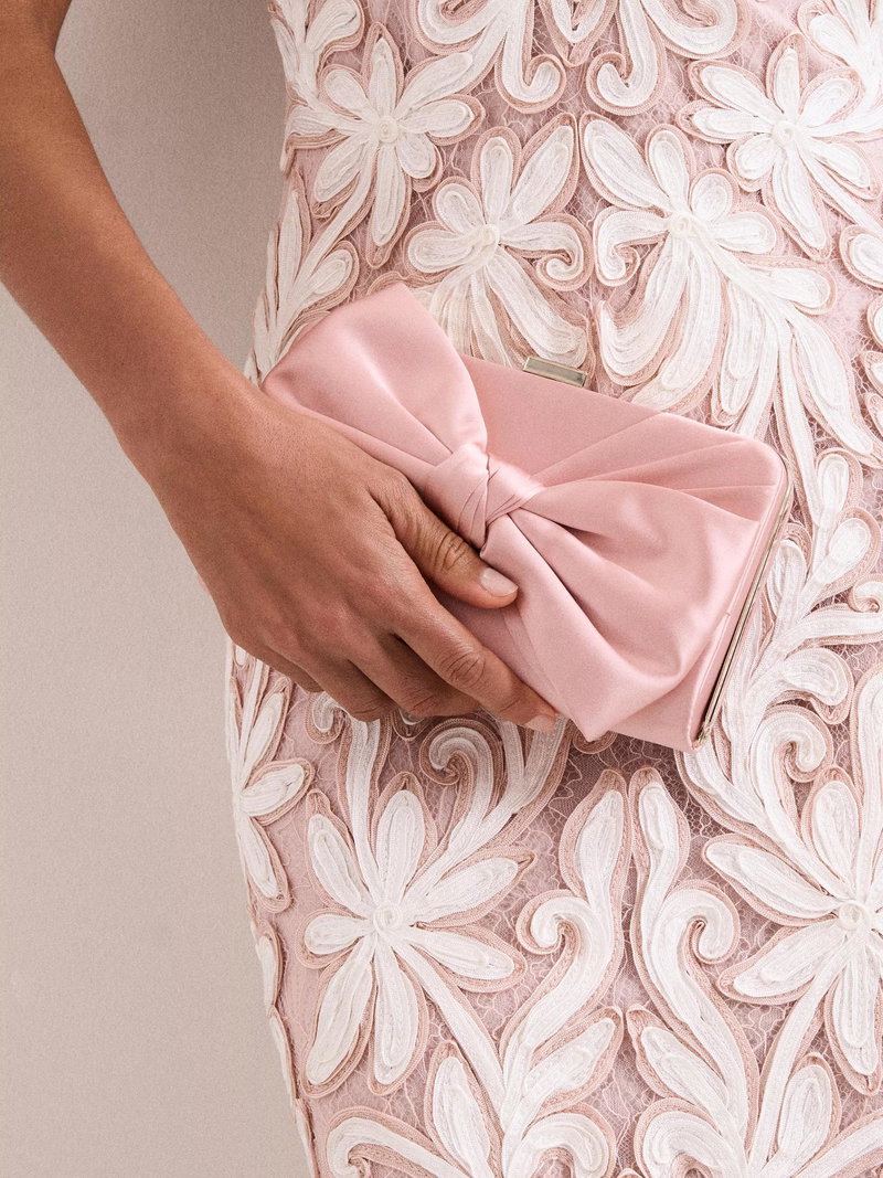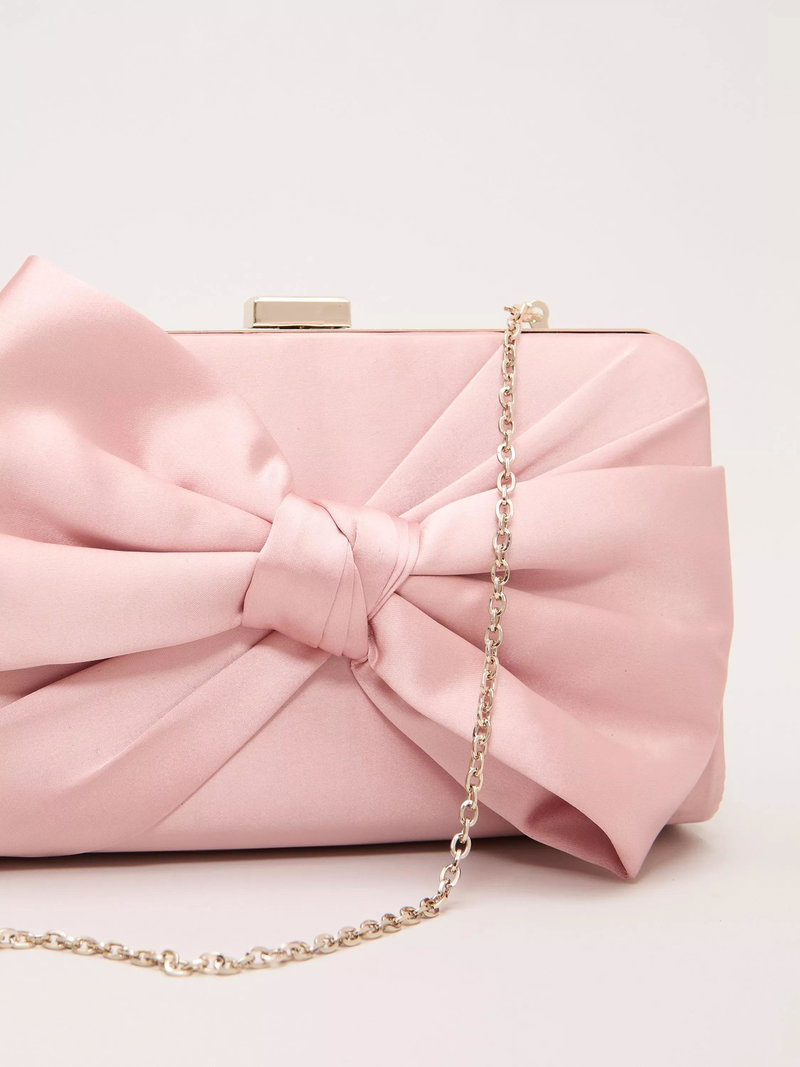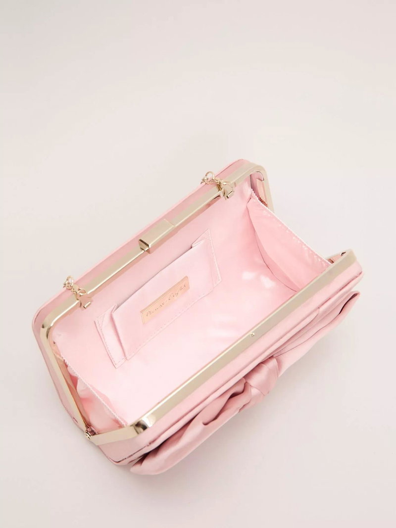 Satin Knot Front Box Clutch Bag, Pale Pink