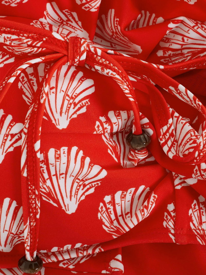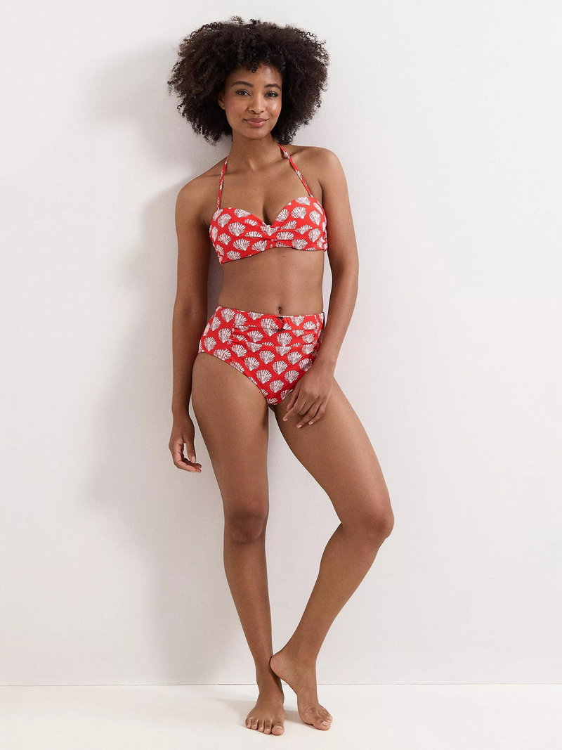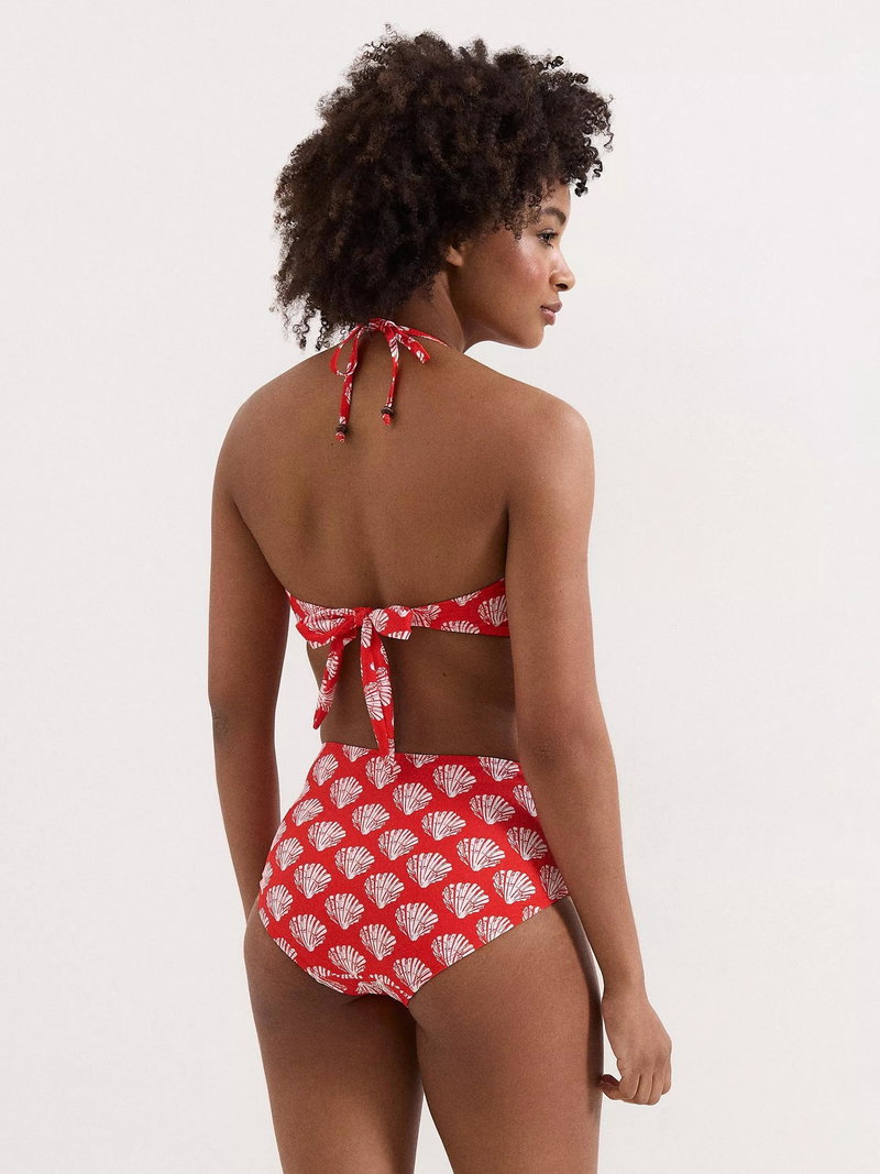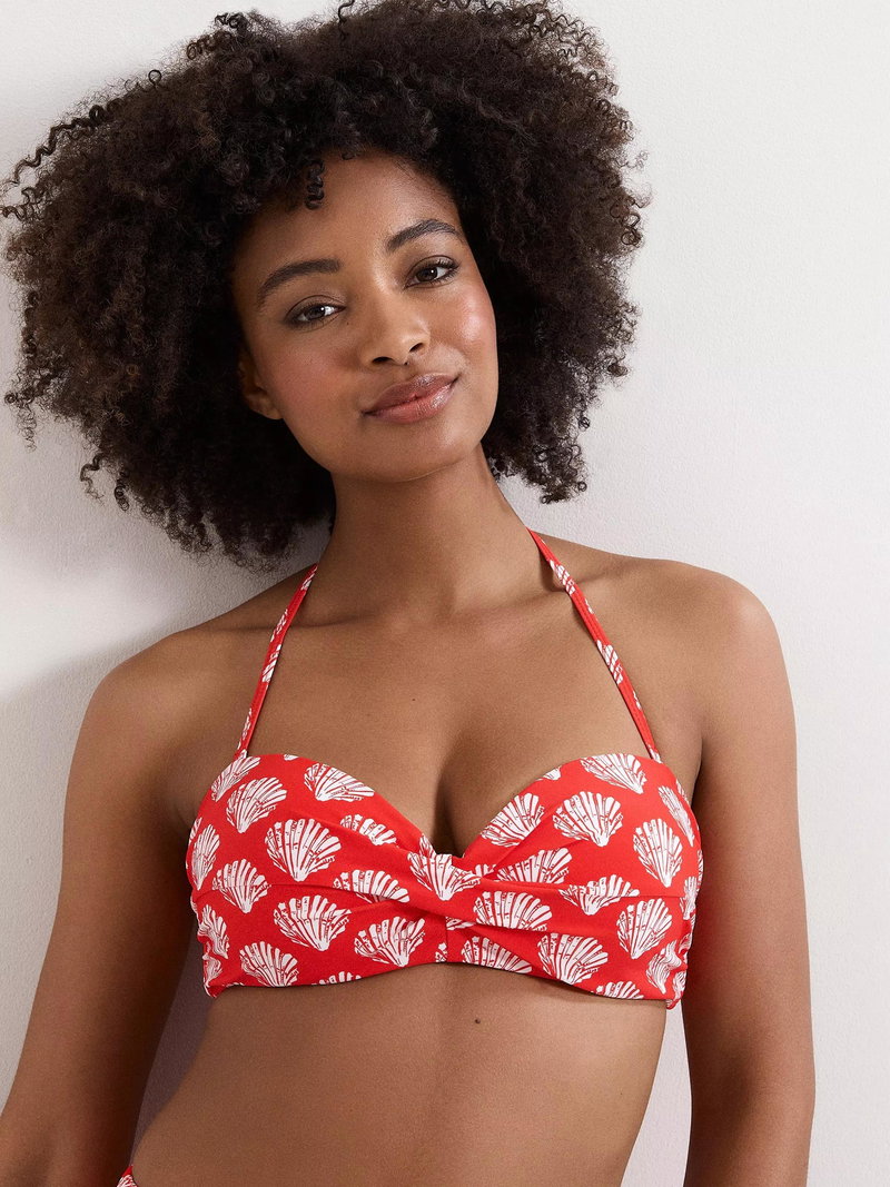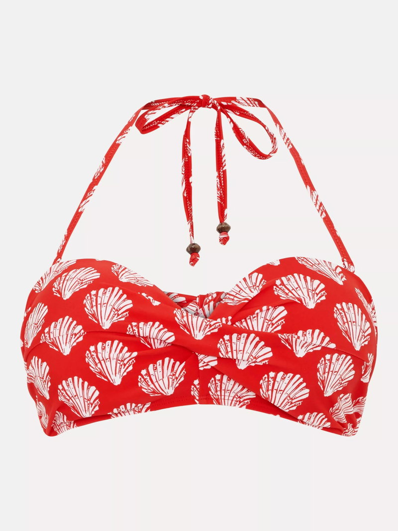 Shell print bikini top with a halterneck tie.
