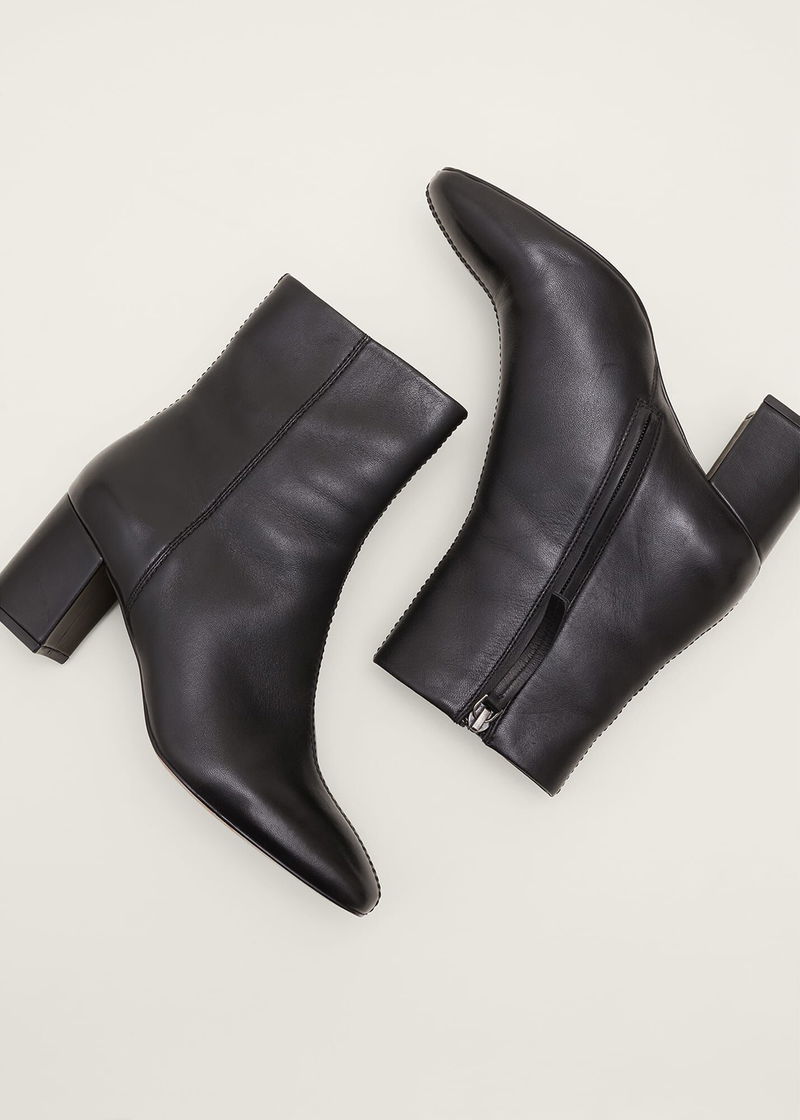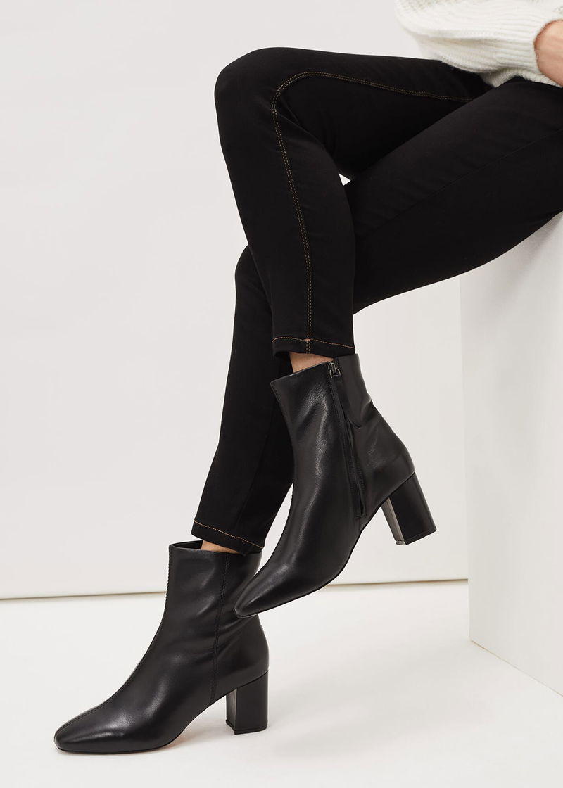 Be one step ahead of the style game with these brand new boots. Sitting on a block heel, these leather ankle boots are a versatile choice for everyday and evening wear. Finished with a side zip fastening.