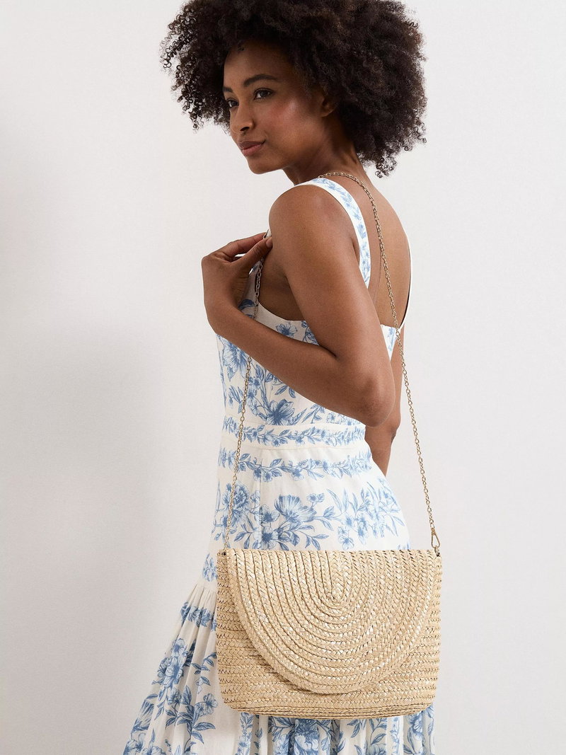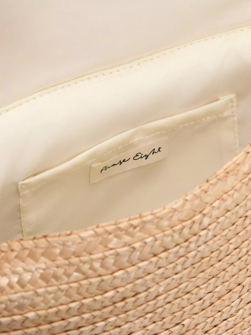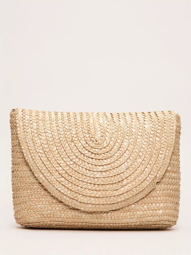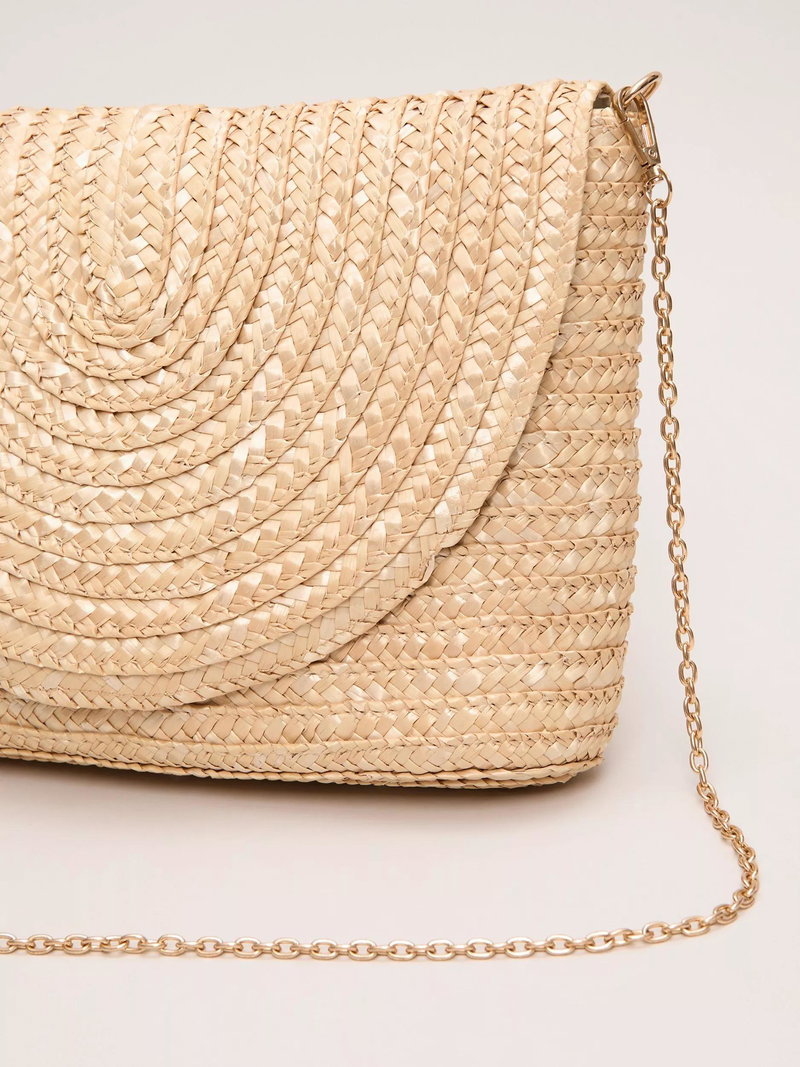This flapover straw clutch bag is ready for all your summer escapes. Light and compact with a smart finish, it features a long detachable chain strap for easy carrying.