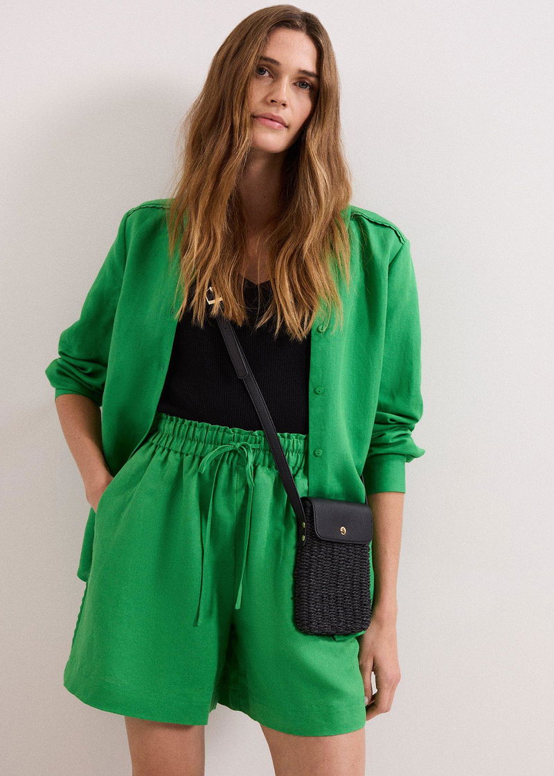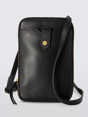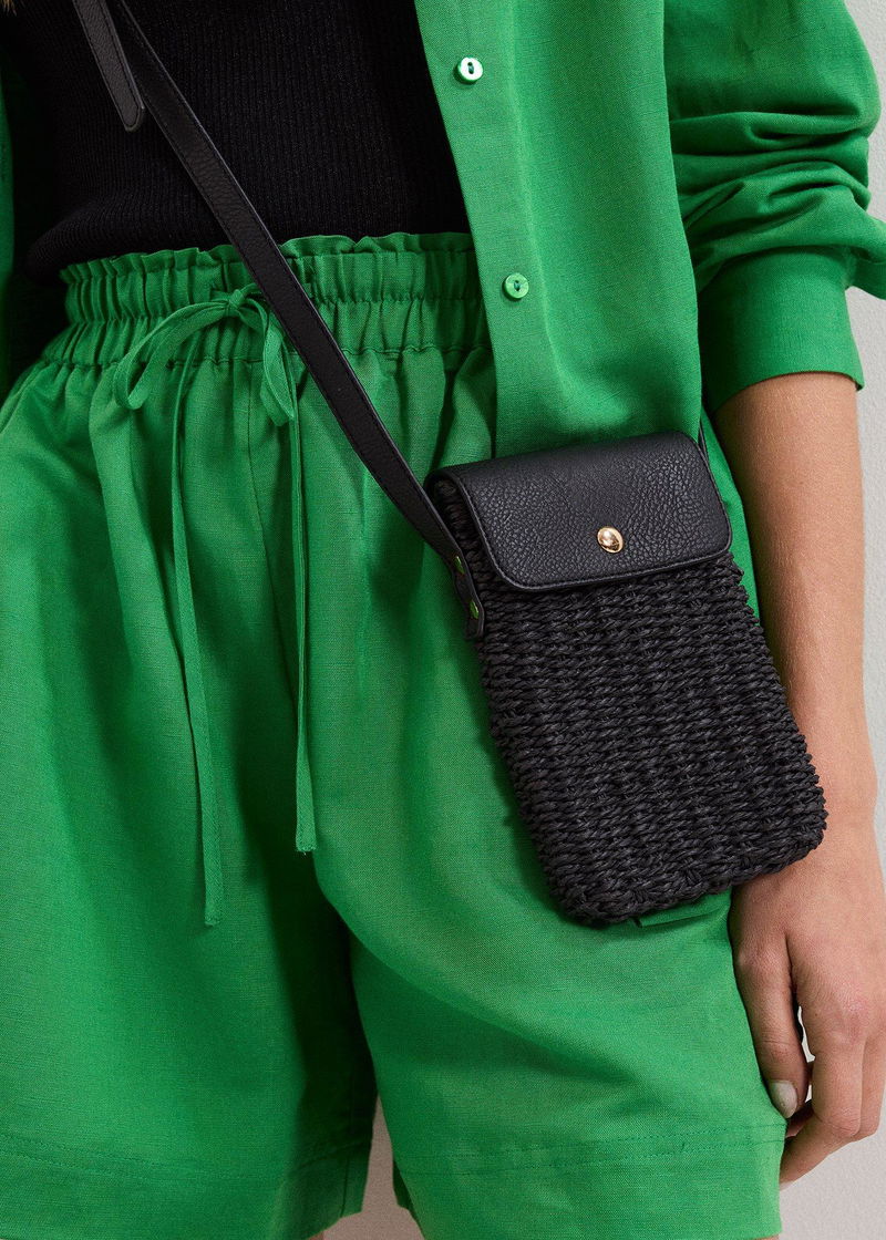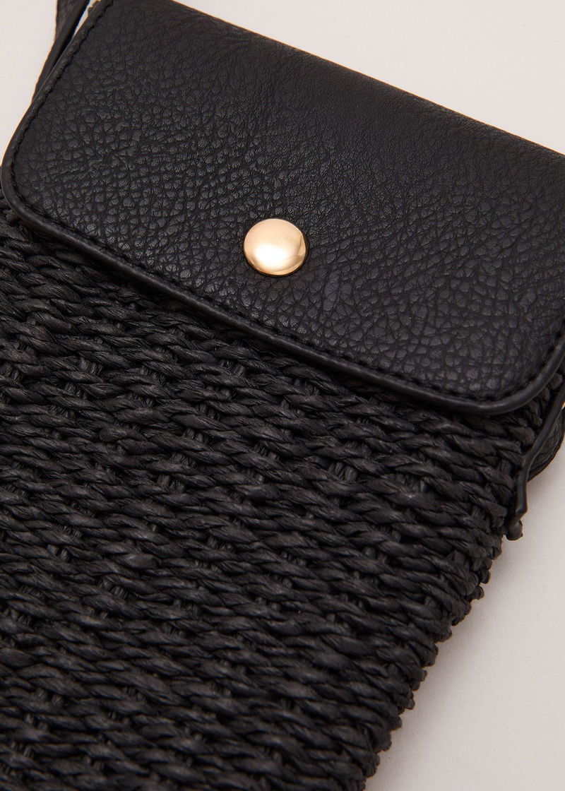Stylish yet practical, this black phone case is a holiday essential you didn’t know you needed. In a modern straw fabric with faux leather accents, this phone case features an adjustable strap to wear cross body with comfort and ease.