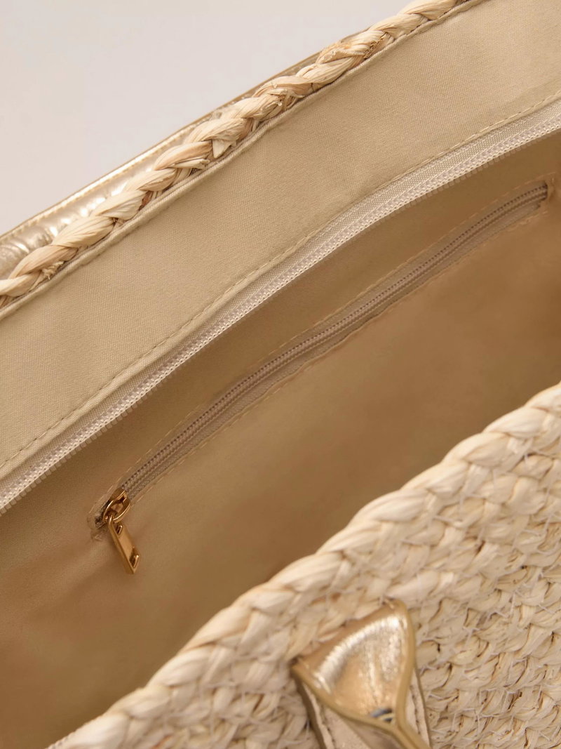 The must-have bag for spring/summer. This straw shopper bag features contemporary faux leather handles.