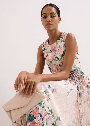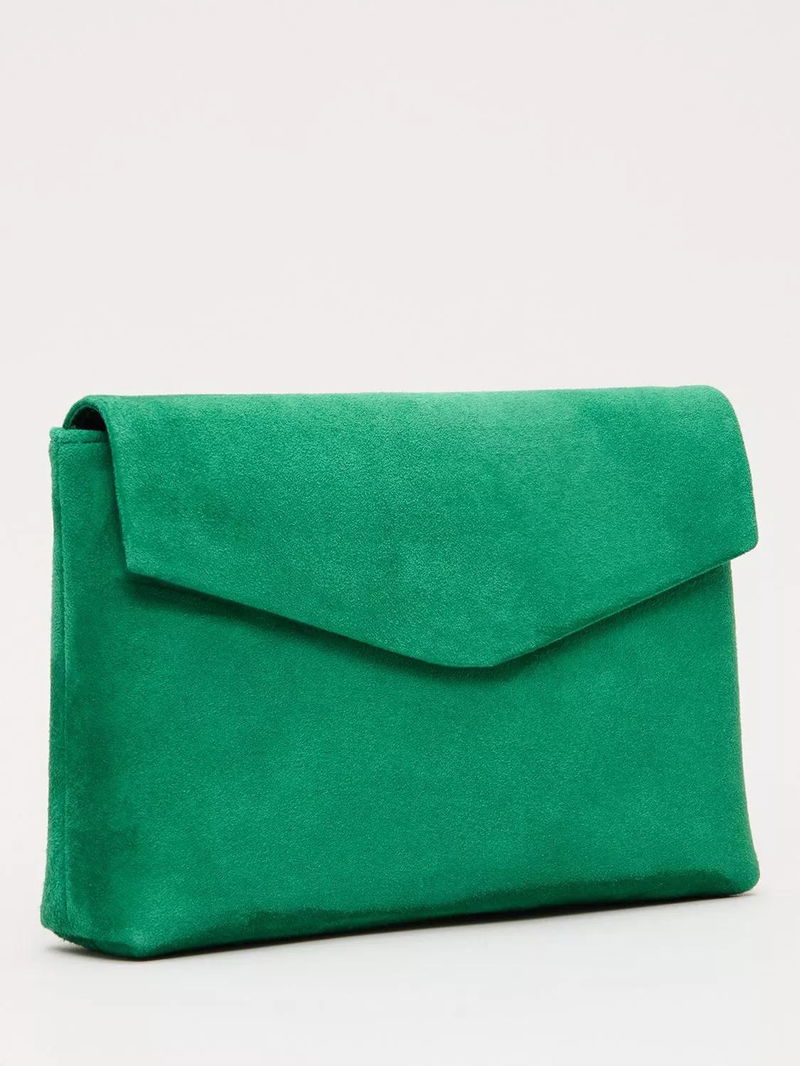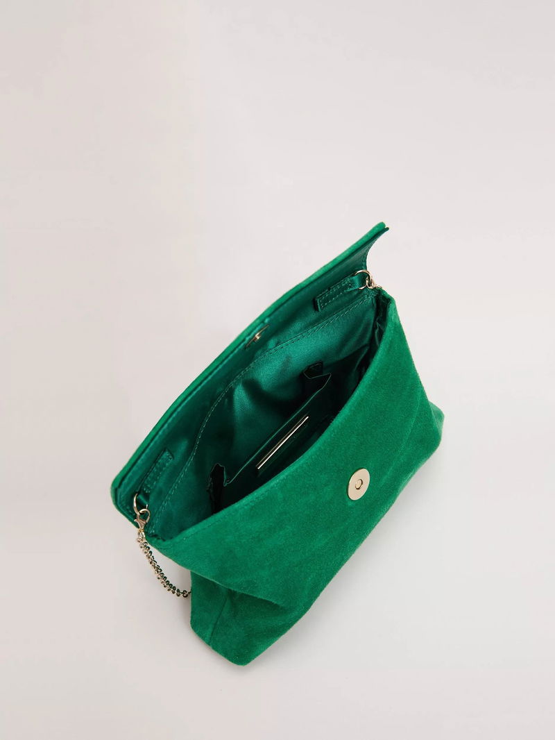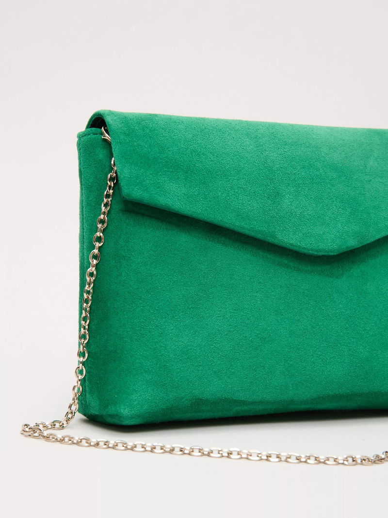 Designed with evenings in mind, this clutch has just enough space for the essentials with an interior slip pocket to help with organisation. Made from soft suede, the fold-over style comes with a shoulder chain strap for hands-free carry.