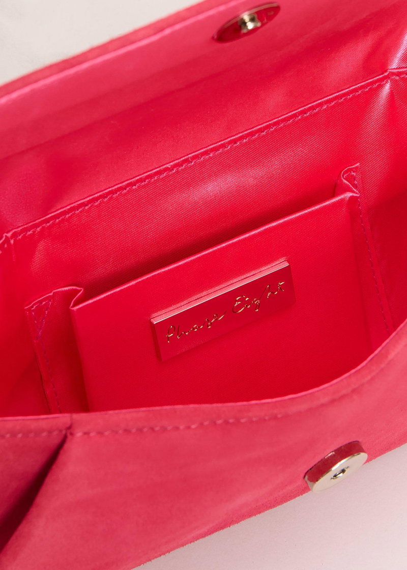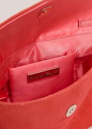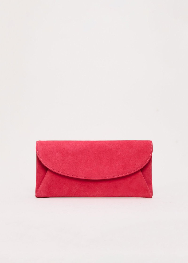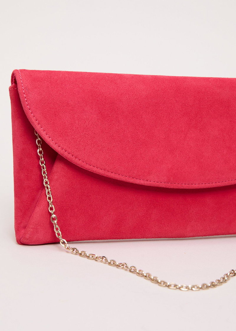 fit Add a pop of colour to your accessory collection. Made in 100% suede, this statement pink clutch bag closes with a practical popper fastening and gives you endless styling possibilities. Designed to wear every season, style with your favourite event looks.