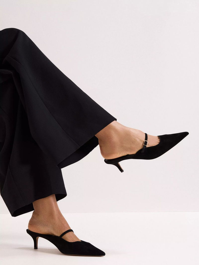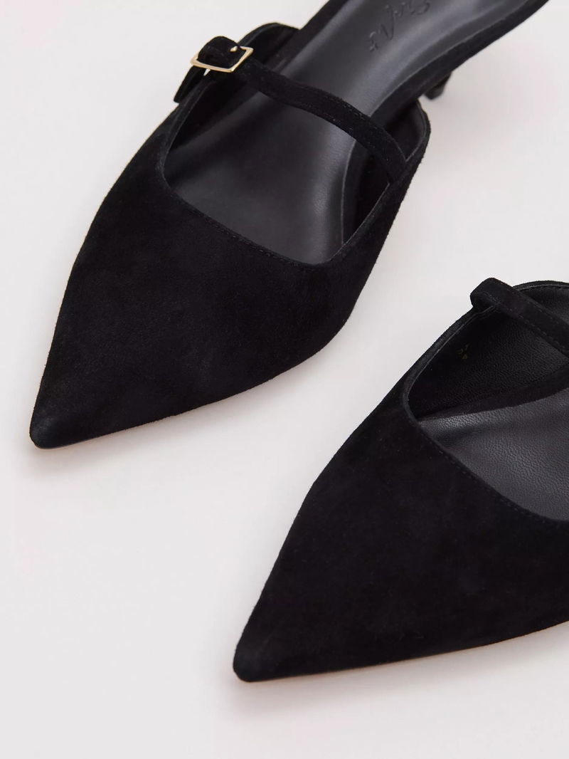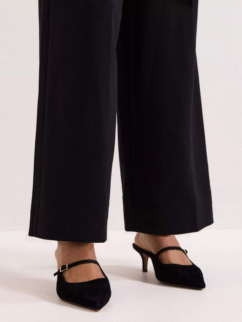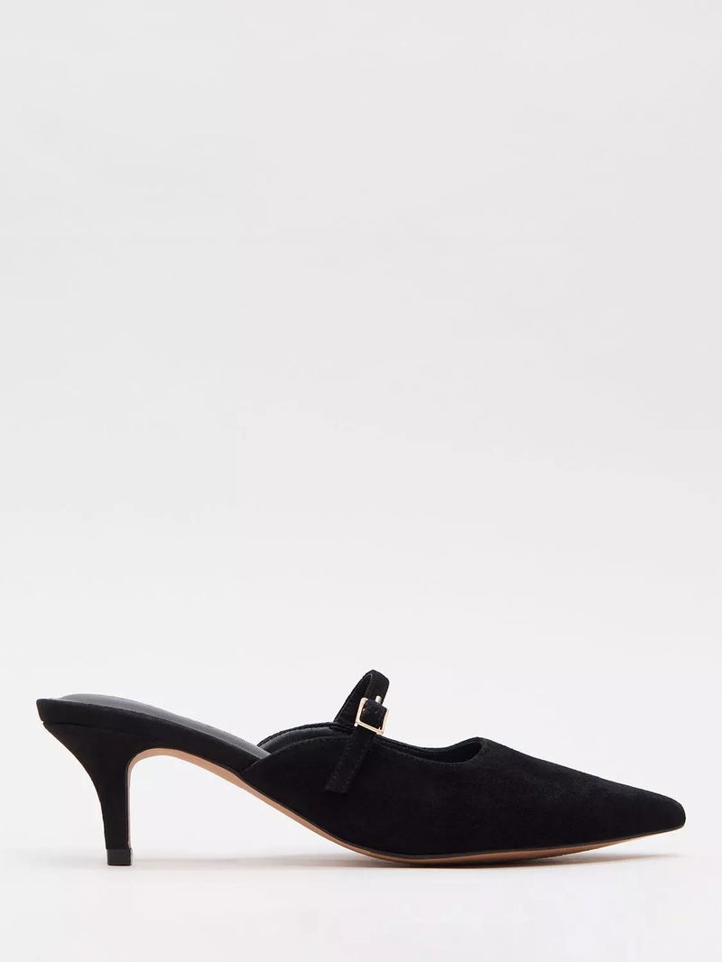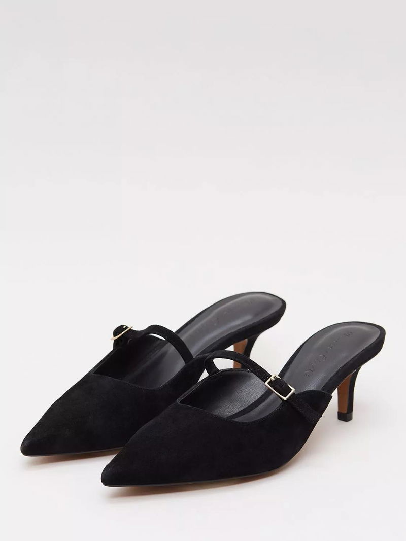 Suede Mary Jane Mules, Black