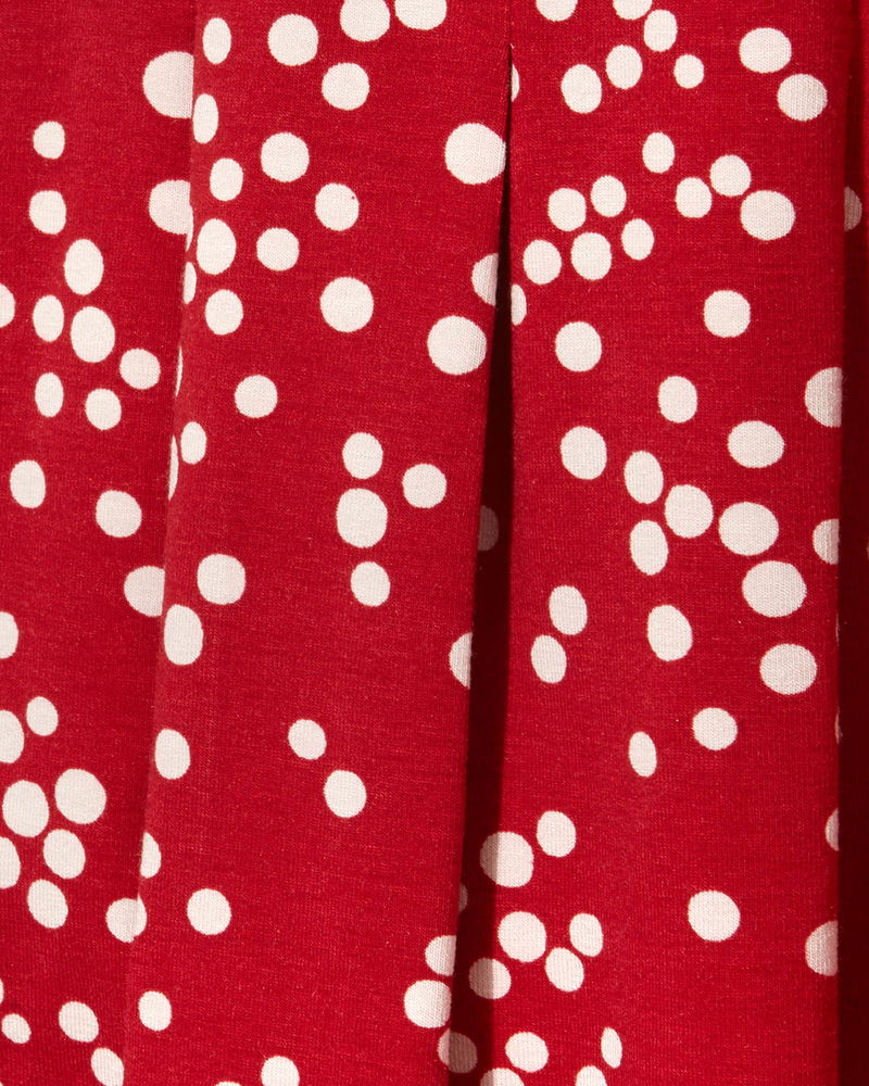 A casual wear jersey top designed in a playful spot print. This scoop neck style has flattering 3/4 length sleeves and a pleated front.