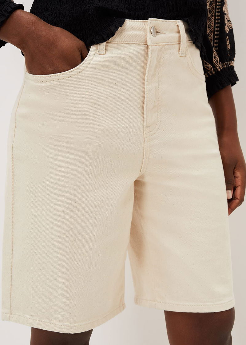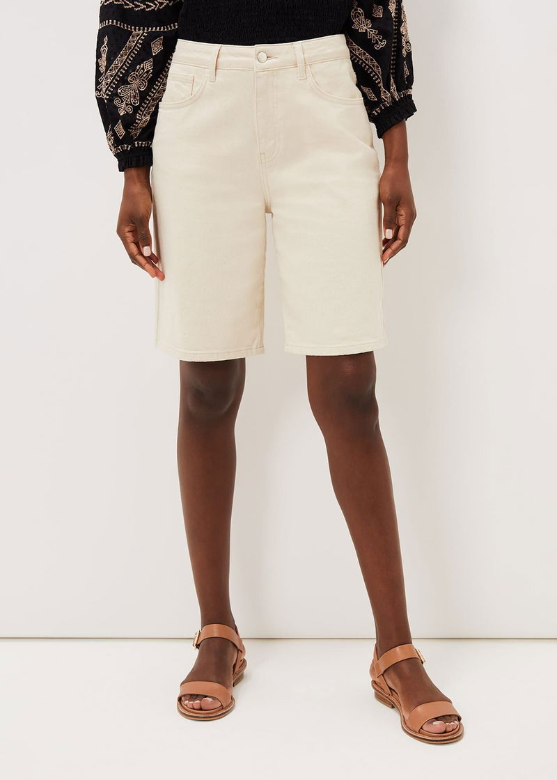 Neutral denim shorts are a summer wardrobe essential. These denim shorts are cut from BCI cotton in a versatile neutral shade and have some stretch for comfort. We'll be wearing this with blouses, tops and t-shirts, all summer long.