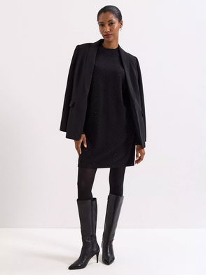 Make a subtle shimmering statement with the Tena dress. Designed with a metallic finish, our dress features long sleeves and falls to a shift silhouette with pleated detailing. We wear ours with tights and boots. This style is responsibly sourced. This style has been made from recycled polyester, giving materials that would have ended up in landfill a new lease of life.
