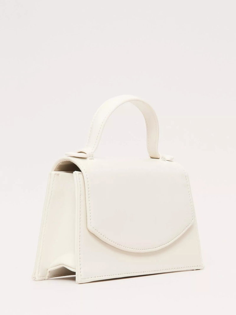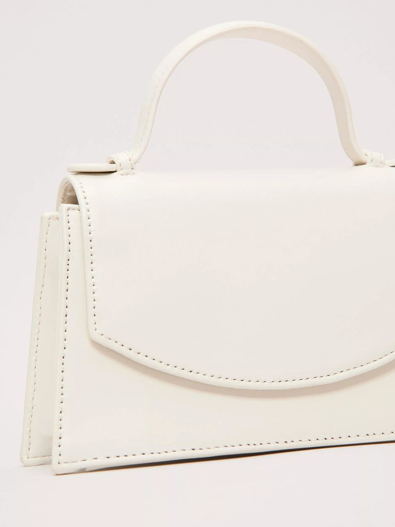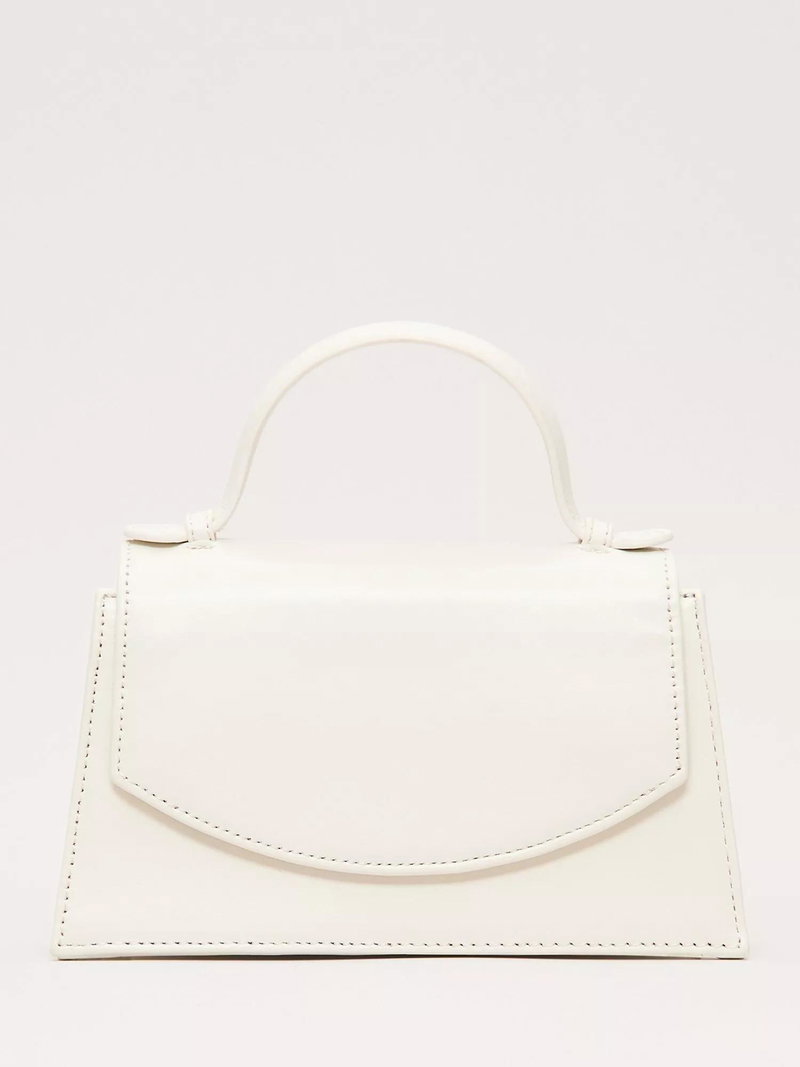 Top Handle Pure Leather Bag, Cream