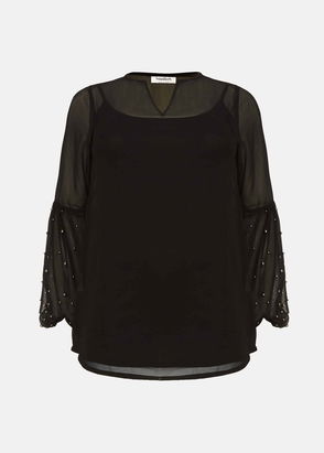 Nothing says event style more than the Zavia blouse. Designed with a rose gold metallic sheen, statement semi-sheer balloon sleeves and shirred accents on the neckline and sleeve cuffs, this style is an instant conversation-starter.