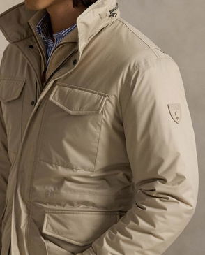 This jacket is crafted from water-resistant twill and insulated with ultra-lightweight down-alternative fill. Thoughtfully constructed, it features suede and leather details as well as a comfortable stretch jersey lining.